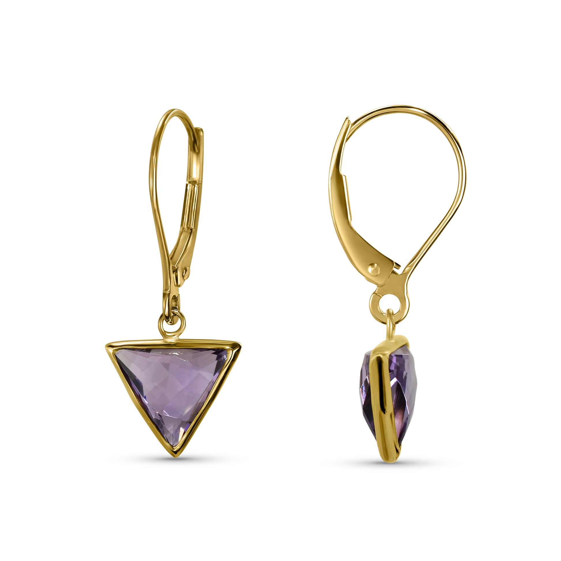 14k Amethyst Triangle Leverback Earring