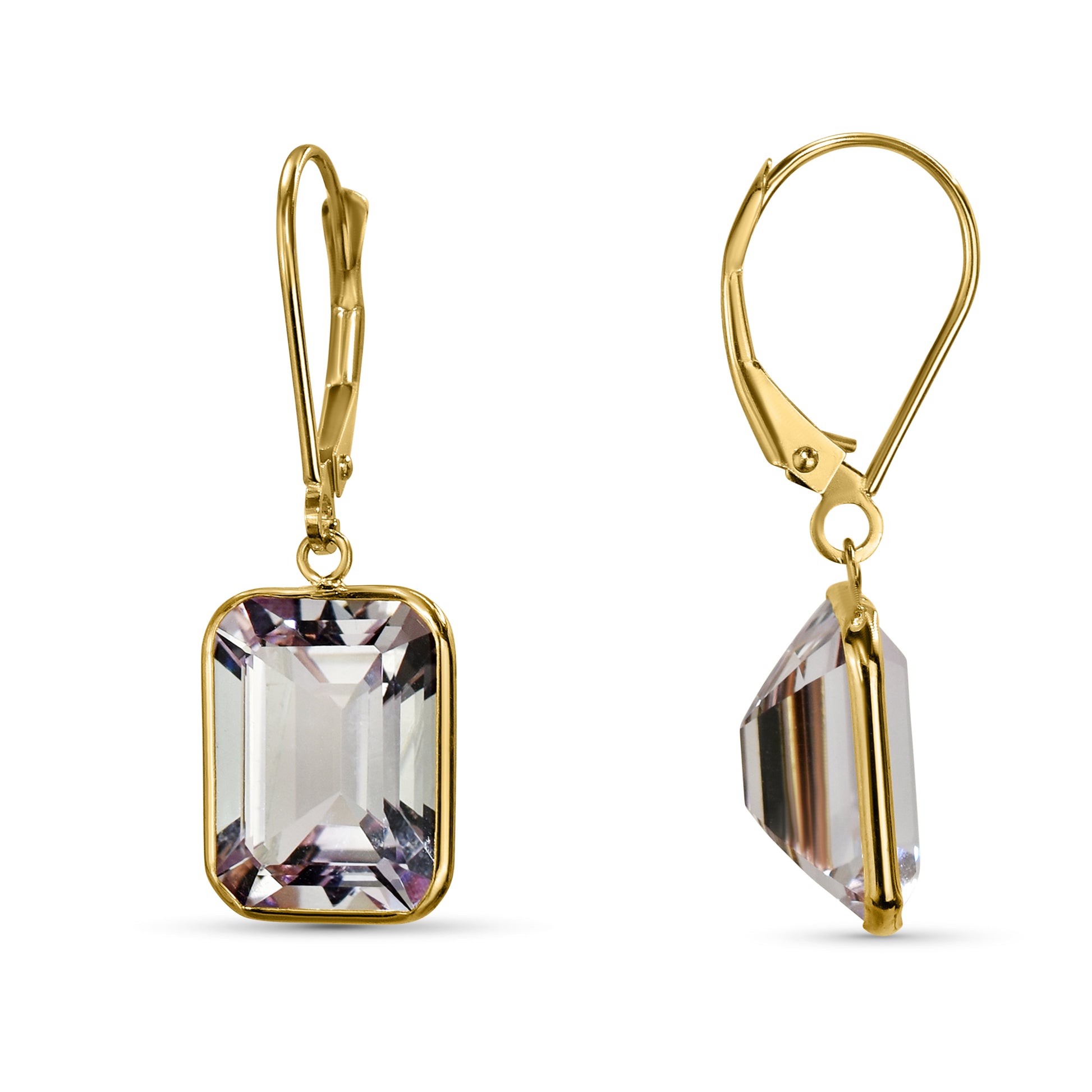 14k Pink Amethyst Emerald Cut Leverback Earring