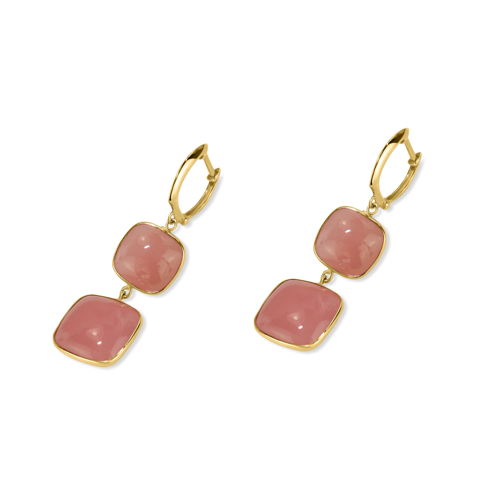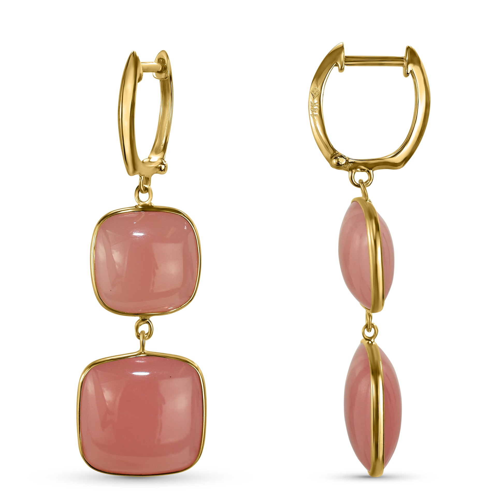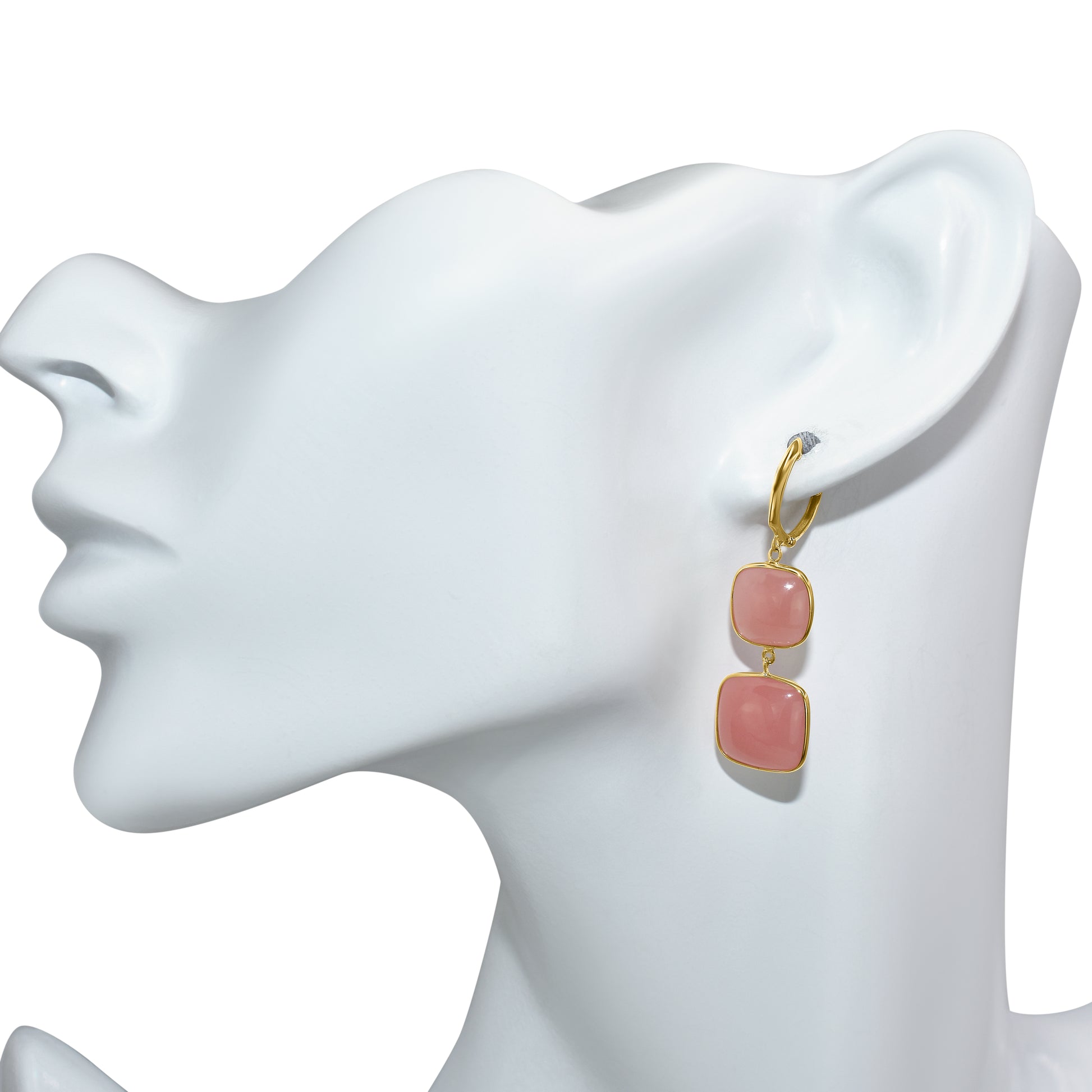 14k Guava Quartz Cushion Bezel Hoop Earring