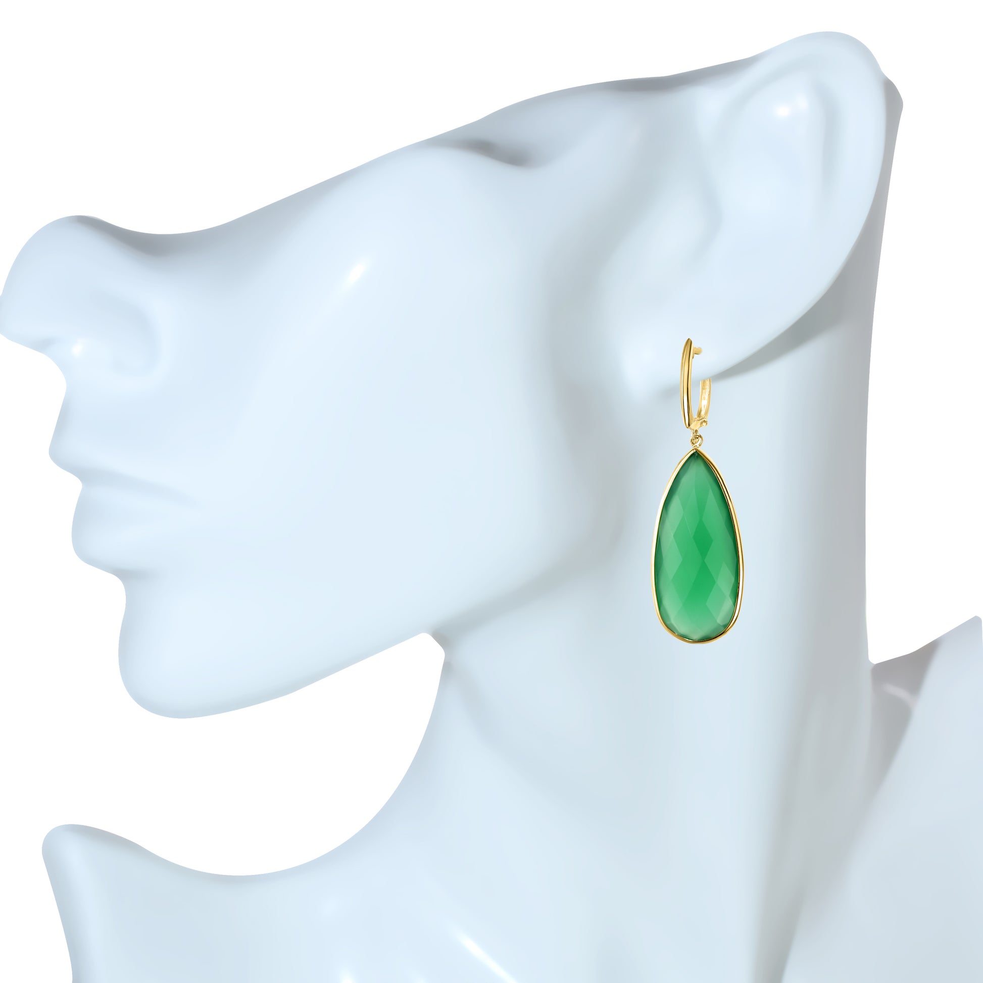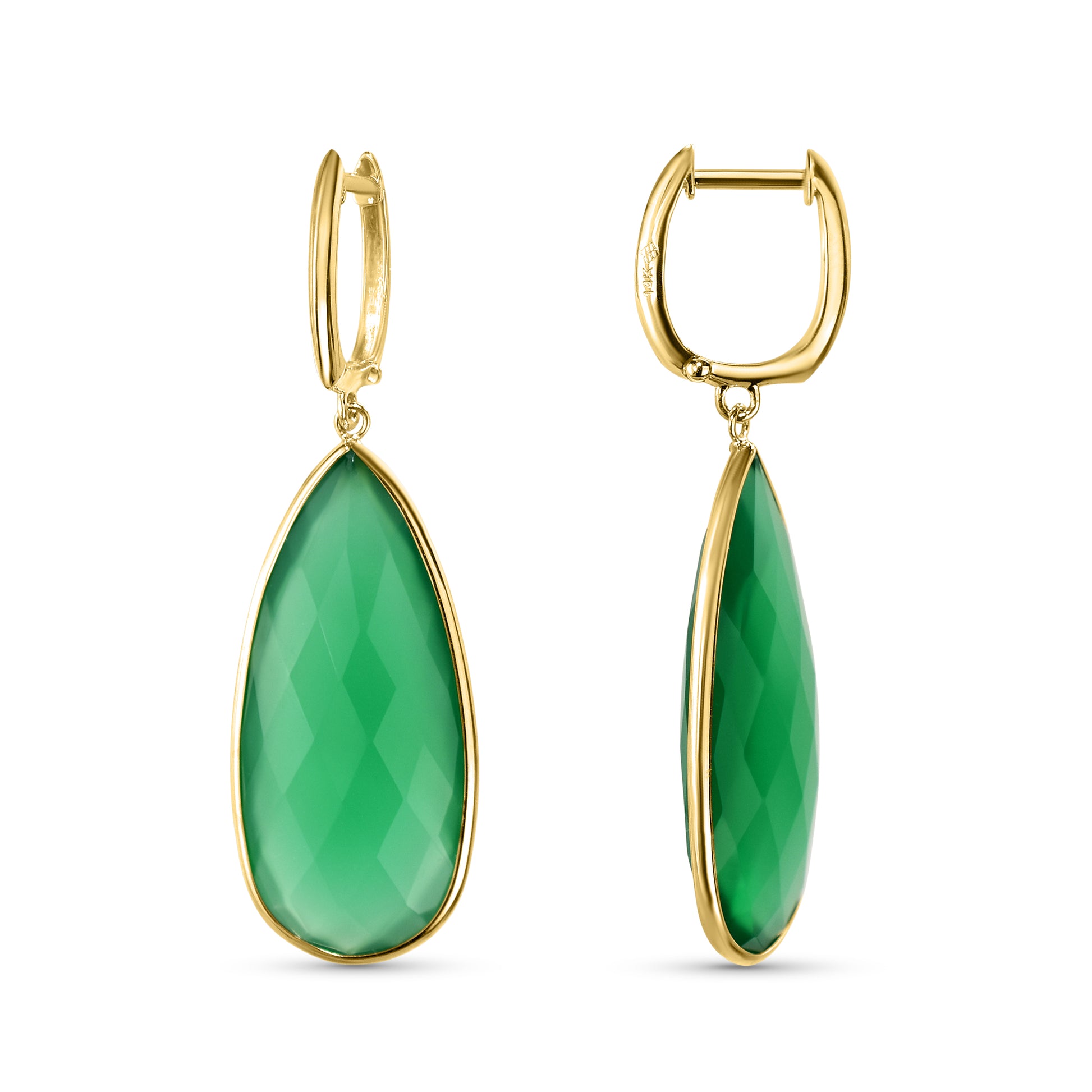 14k Green Onyx Elongated Pear Drop Hoop Earring