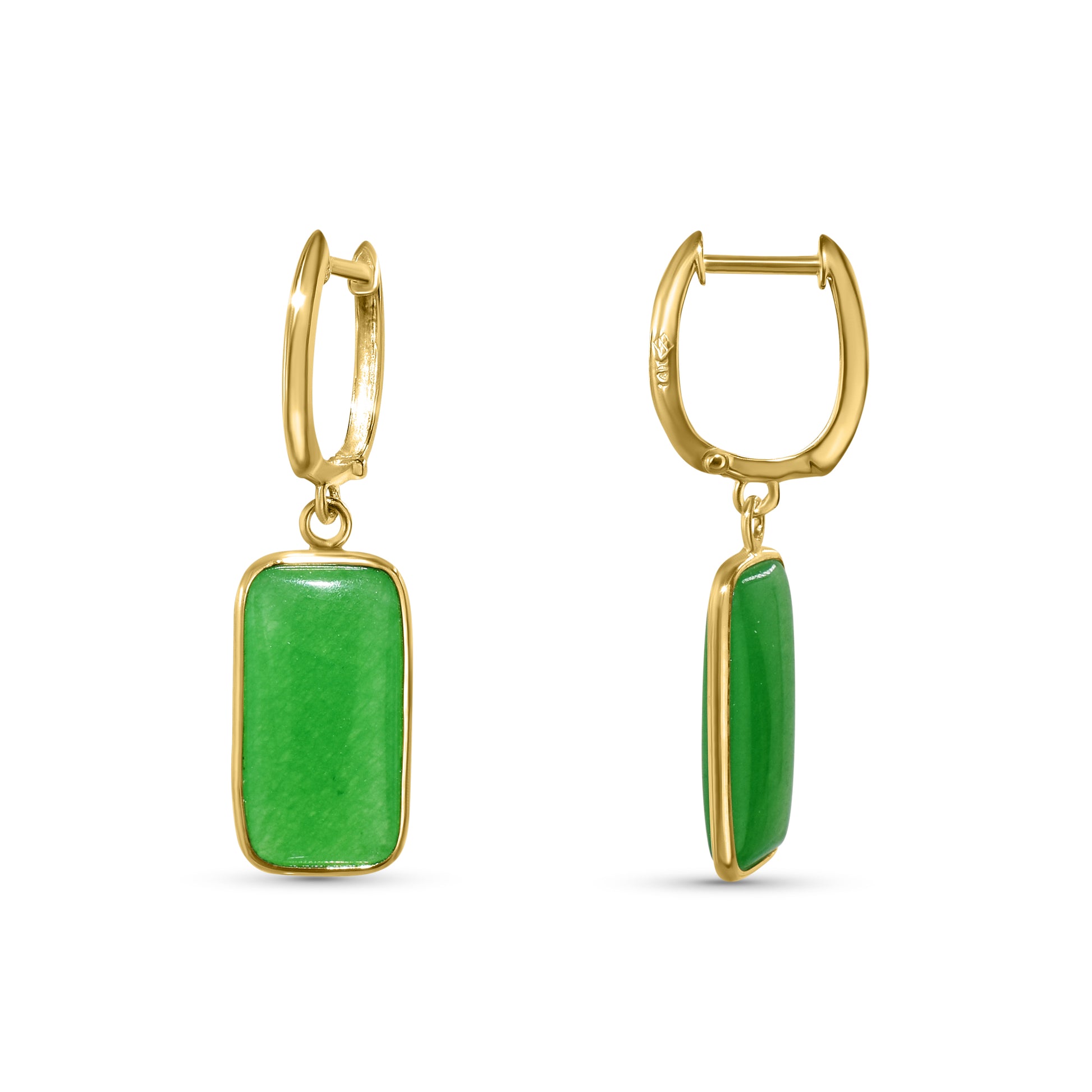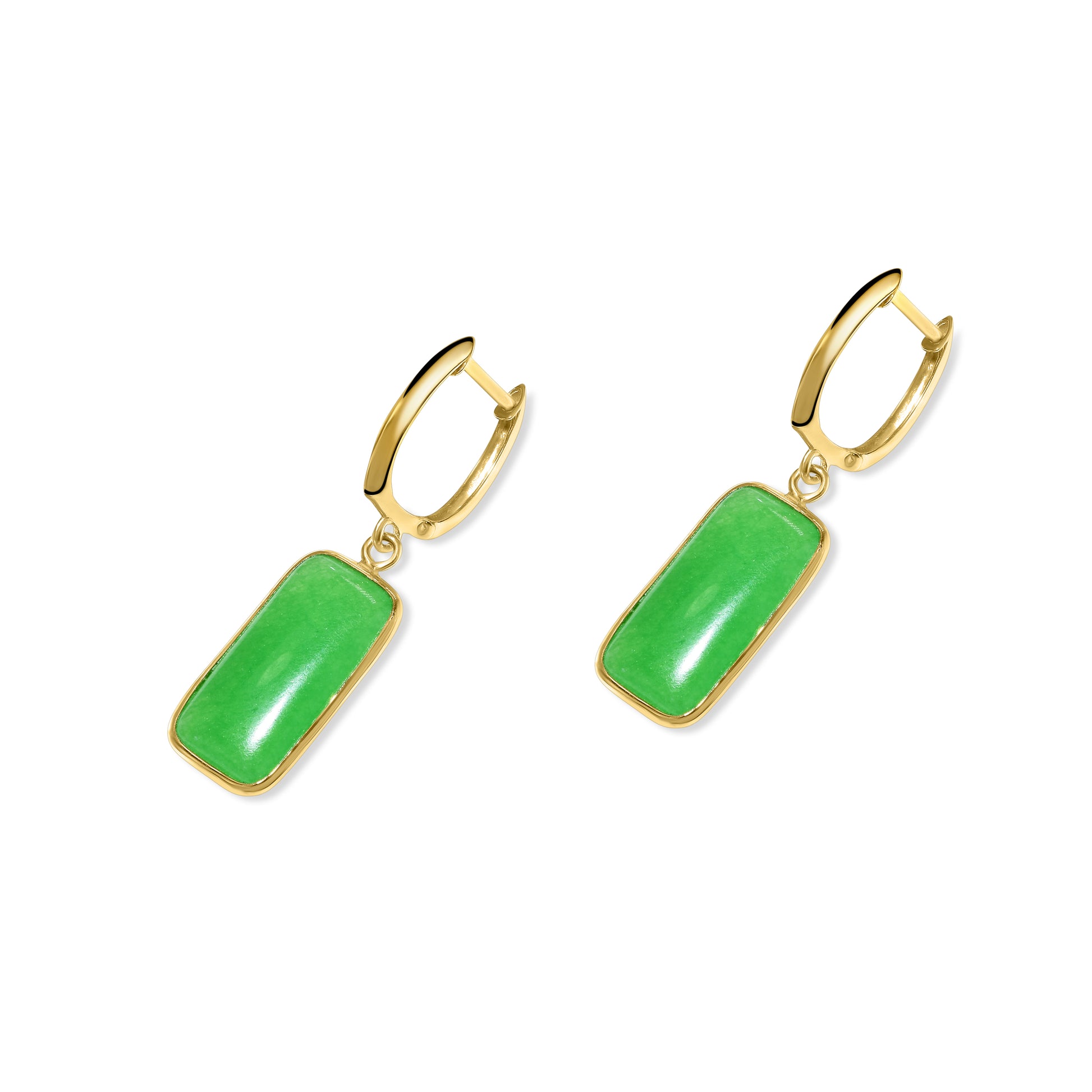 Infuse style and elegance into your wardrobe with our stunning 14k Green Jade Hoop Earrings. The rich green hue of the jade stone paired with the classic hoop design creates a captivating look that will elevate any outfit. Made with 14k gold, these earrings are a luxurious addition to your collection.