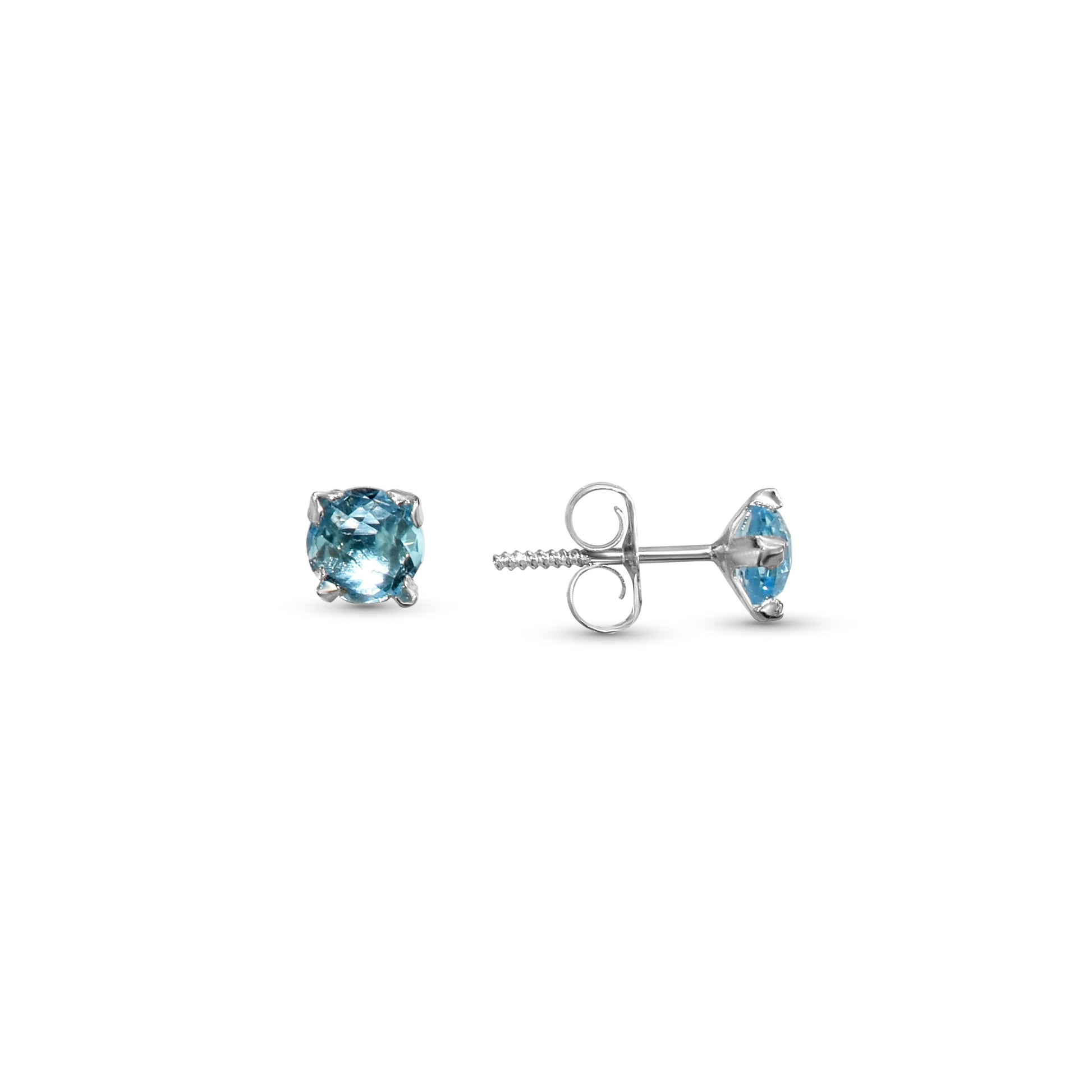14k White Gold Swiss Blue Topaz Stud Earring