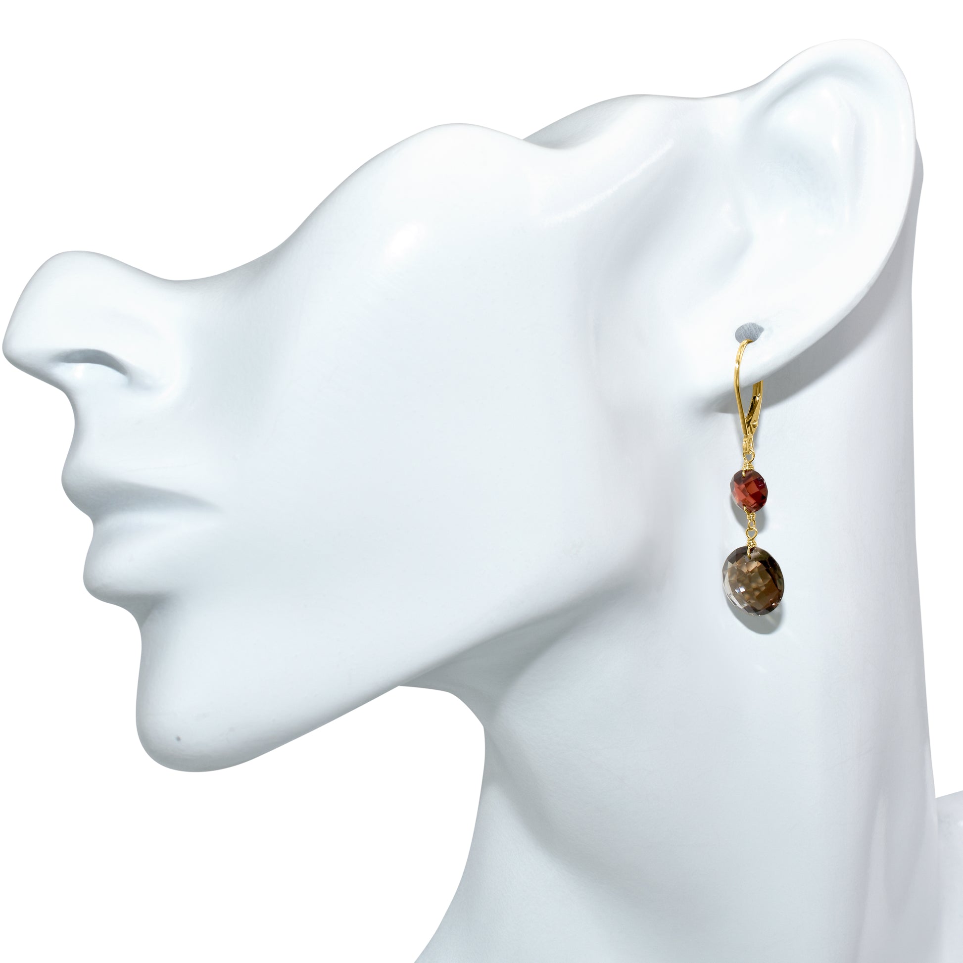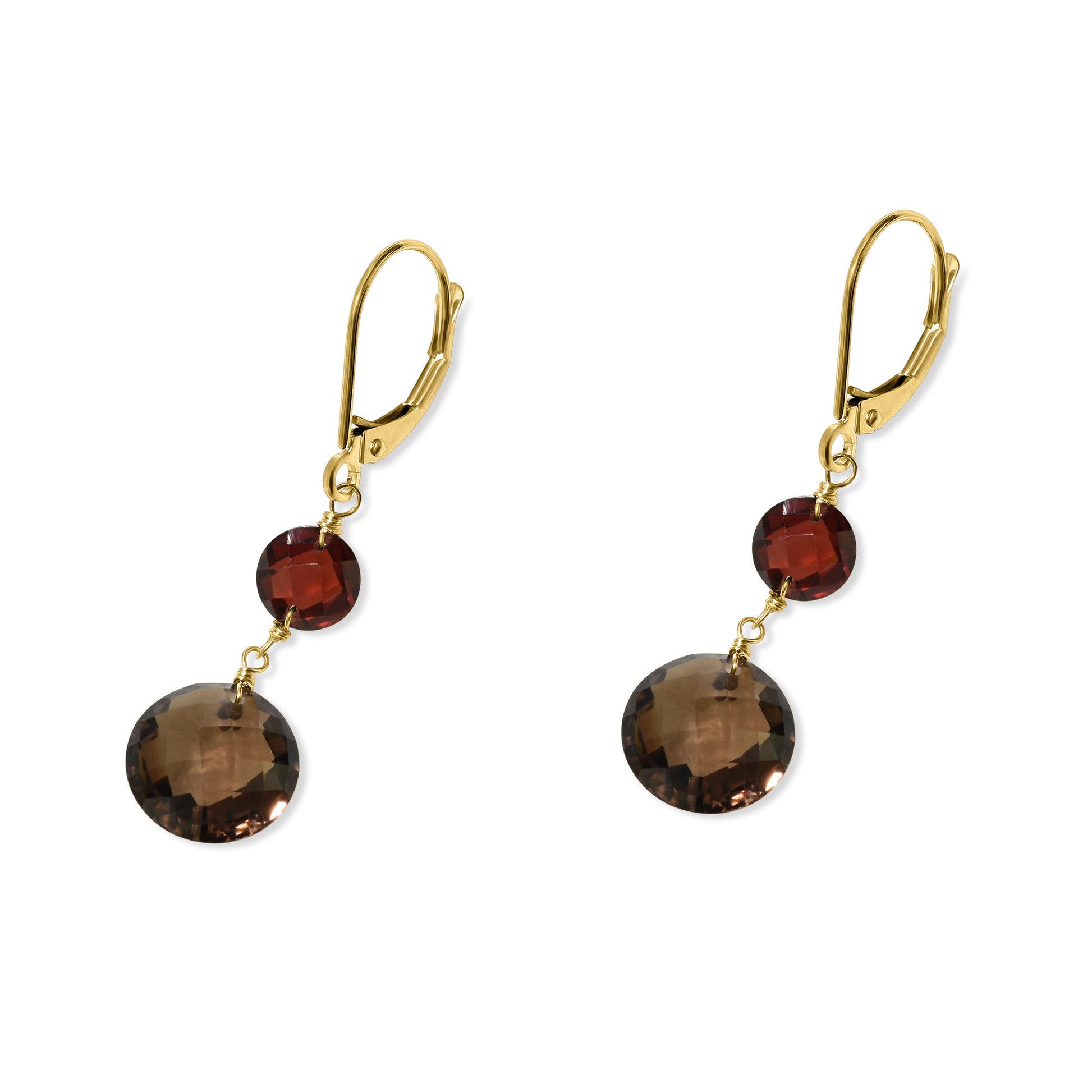 14k Garnet Smoky Quartz Coin Leverback Earring