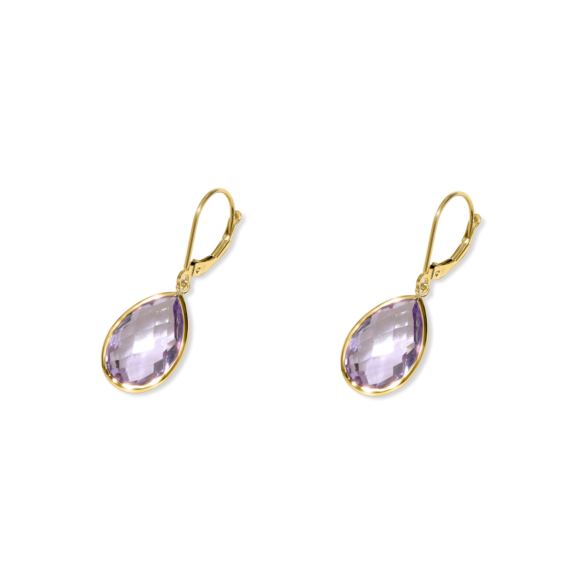 14k Pink Amethyst Bezel Leverback Earring
