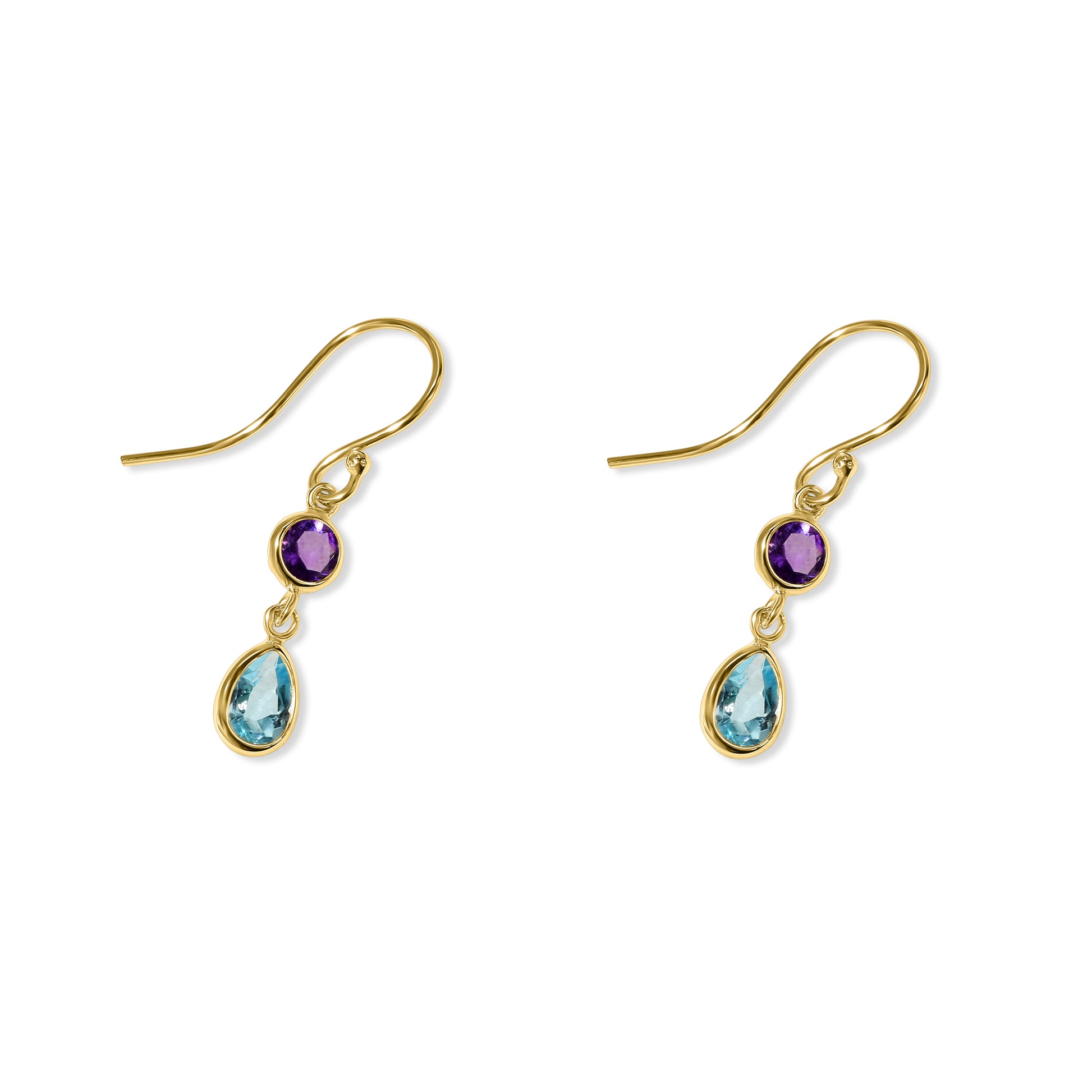 14k Amethyst Swiss Blue Topaz Set Dangle Hook Earring