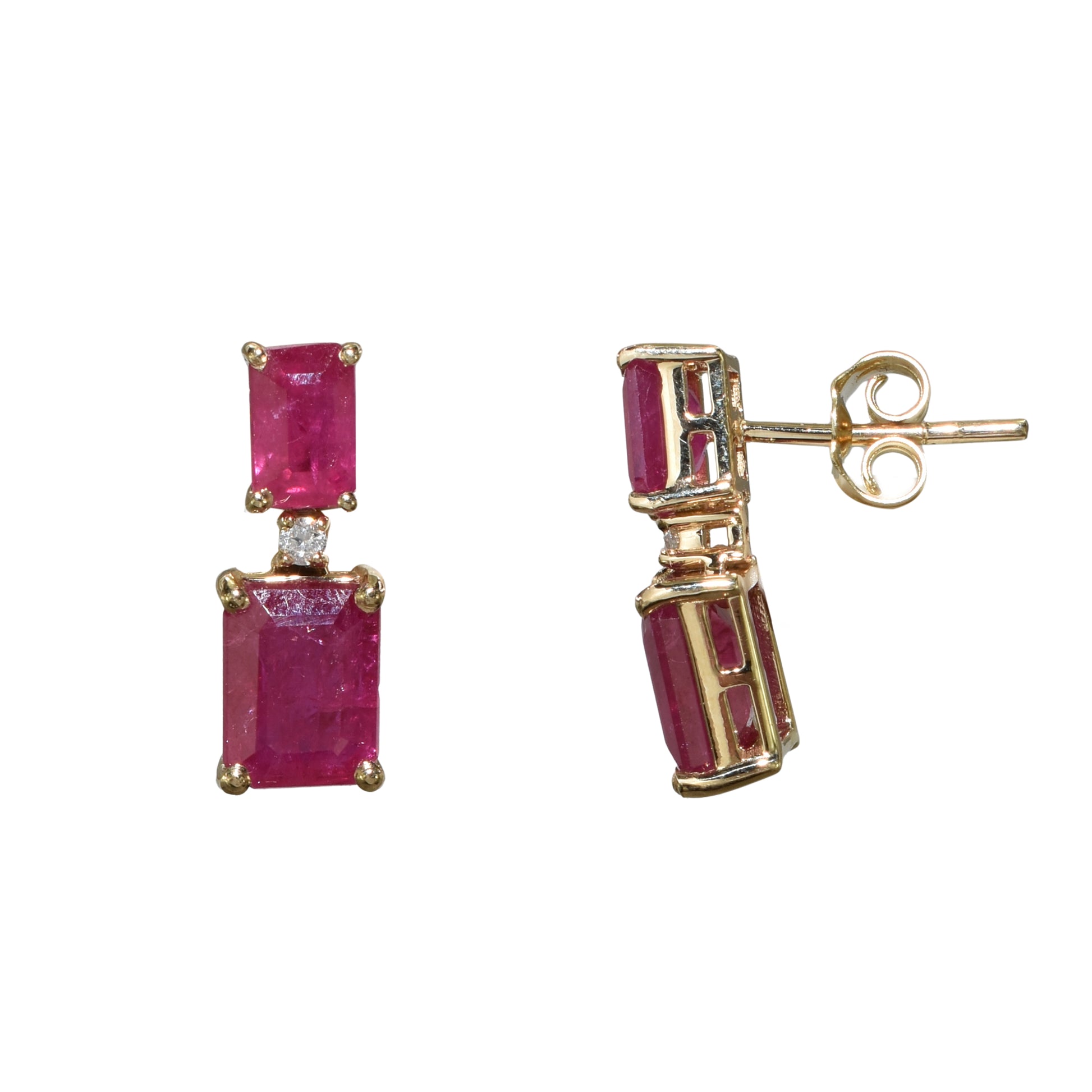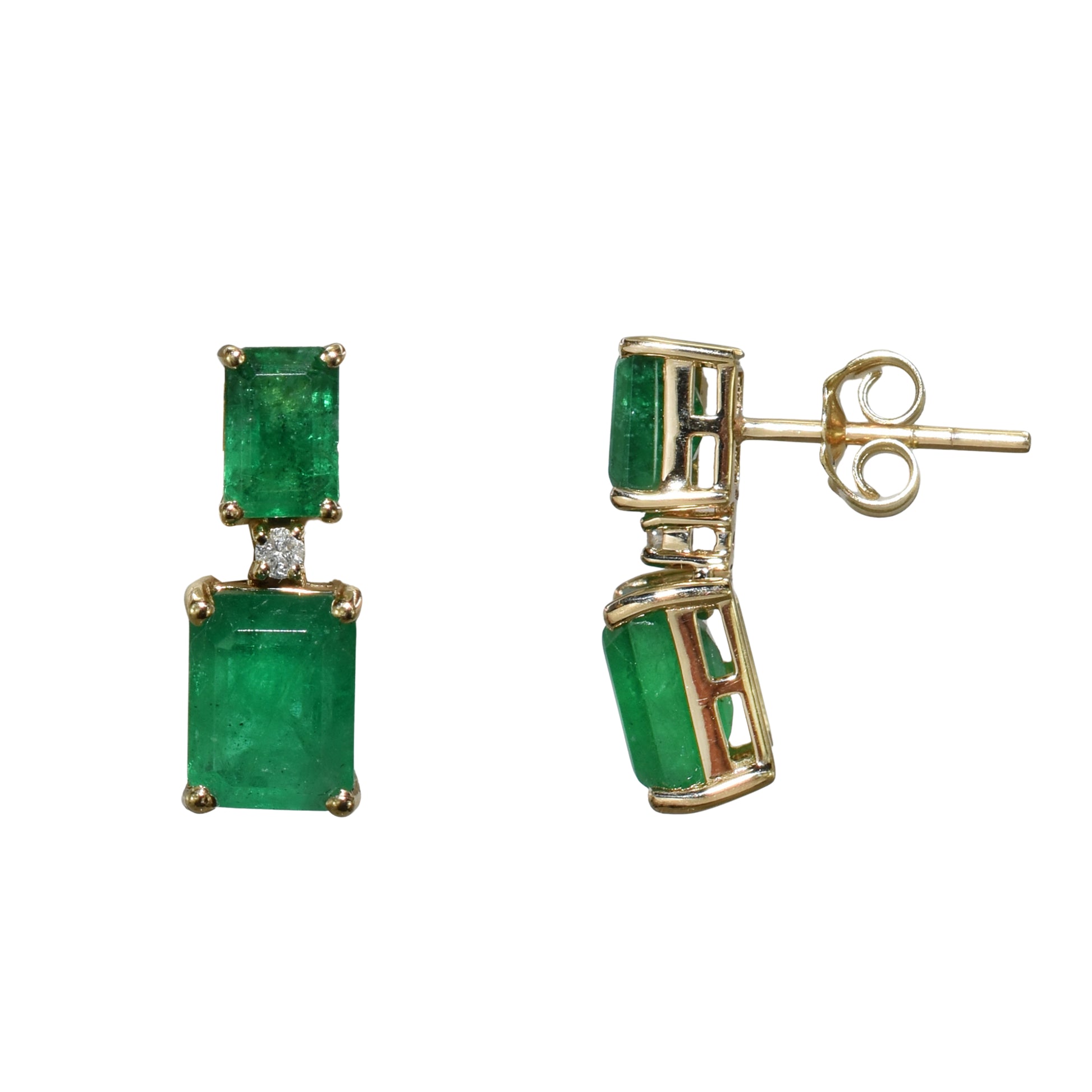 Elevate your elegance with these 14k gold earrings featuring striking rectangular diamonds paired with vibrant emeralds. Their timeless design adds a touch of sophistication to any outfit, making them perfect for both special occasions and everyday luxury. Experience the perfect blend of brilliance and color that enhances your natural beauty.
