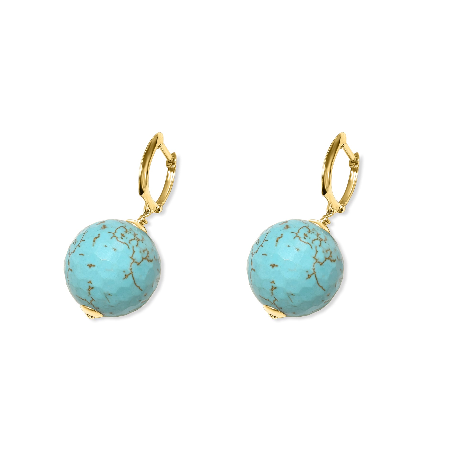 Elevate your style with these 14k faceted turquoise hoop earrings. Crafted from genuine 14k gold, their vibrant turquoise stones add a striking pop of color and a touch of elegance to any outfit. Lightweight and comfortable, these hoops are perfect for daily wear or special occasions, making them a versatile addition to your jewelry collection. Experience timeless beauty and effortless sophistication with every wear.