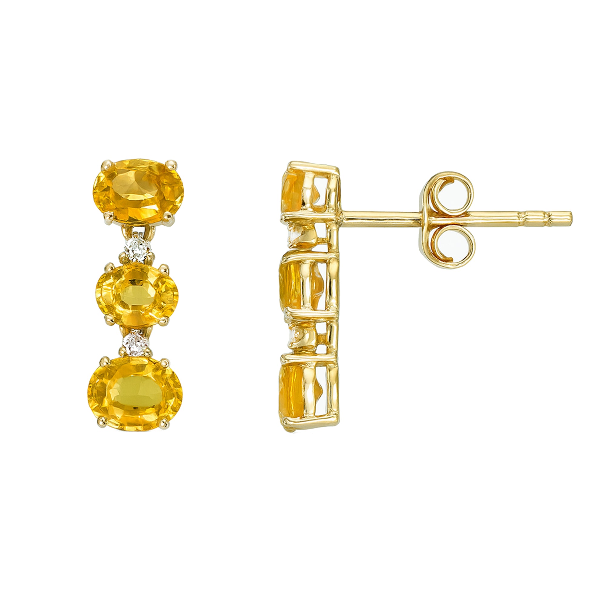 Elevate your elegance with these 14k yellow gold earrings featuring radiant oval-shaped yellow sapphires framed by sparkling diamonds. Their refined design perfectly balances vibrant color and timeless sparkle, making them an exquisite choice for both everyday wear and special occasions. Experience the allure of precious gemstones crafted to enhance your natural beauty with every glance.
