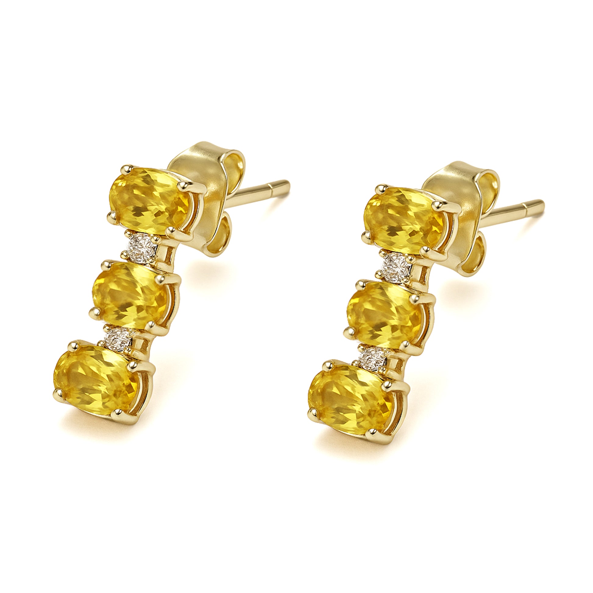 14k Yellow Sapphire Diamond Oval Shape Earring