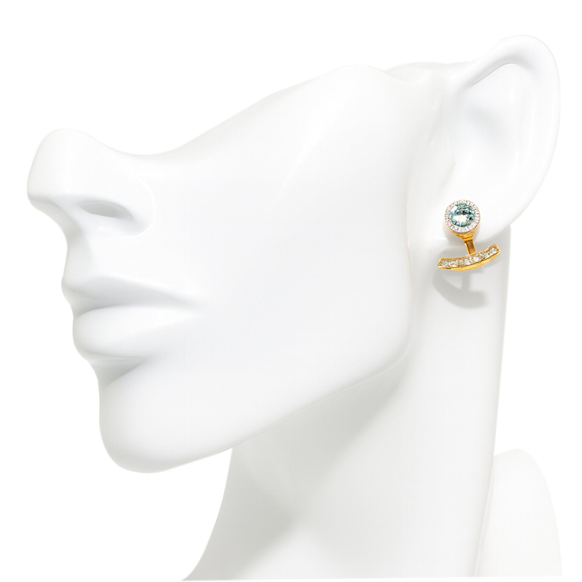 14k Swiss Blue Topaz Diamond Curved Bar Jacket Earring