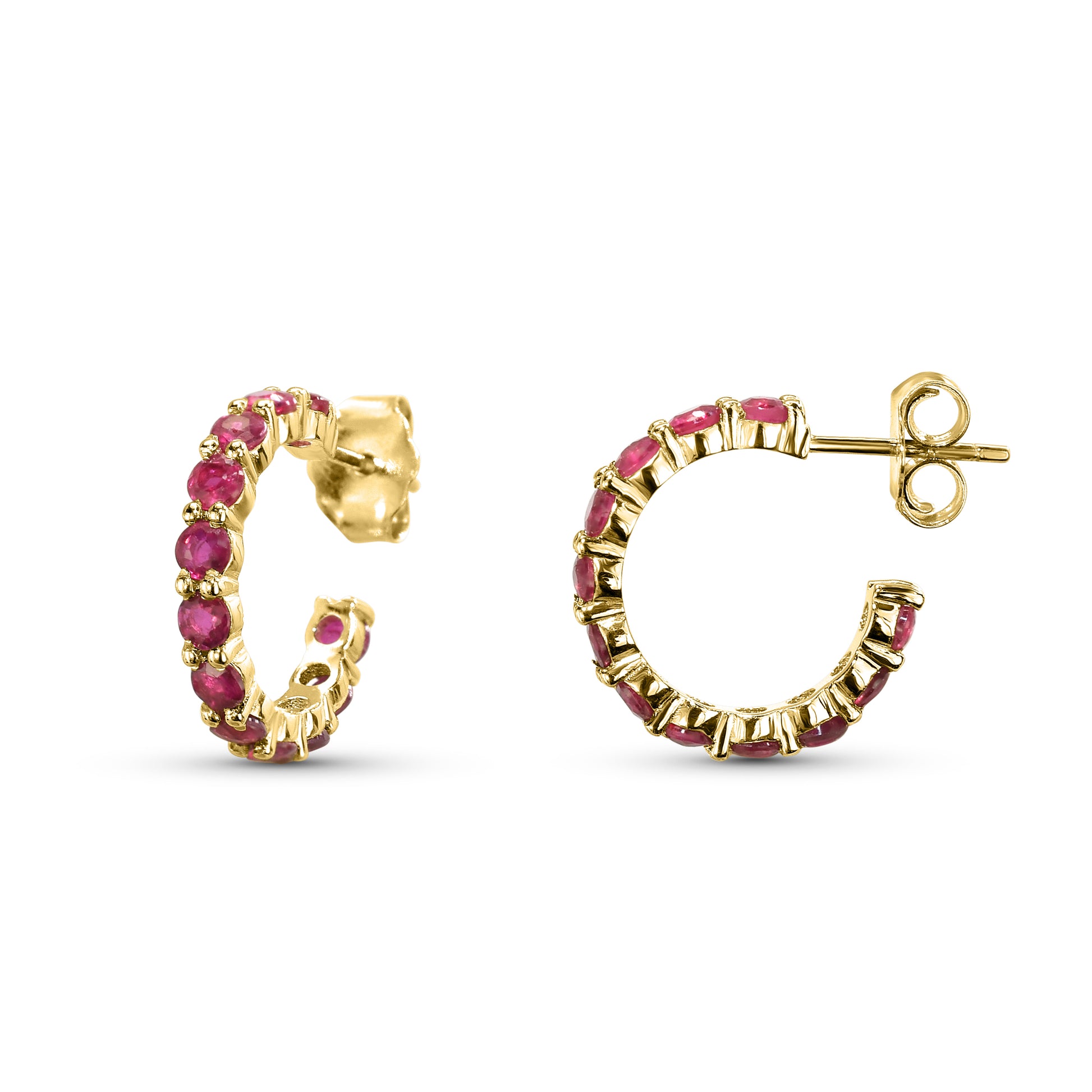Elevate your elegance with our 14k Ruby Round Multi Stone Earrings. Crafted in rich 14k gold, these earrings feature vibrant round rubies that catch the light beautifully, adding a touch of timeless luxury to any outfit. Perfect for special occasions or daily wear, they offer a striking blend of color and sophistication to highlight your unique style.