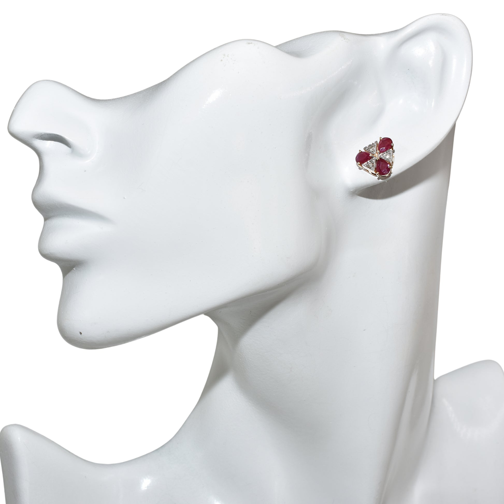 Elevate your elegance with these 14k gold earrings featuring a striking pear-shaped sapphire accented by sparkling diamonds in a unique triangle design. Perfect for adding a touch of sophistication and vibrant color to any outfit, these earrings blend timeless luxury with modern style for unforgettable wear.