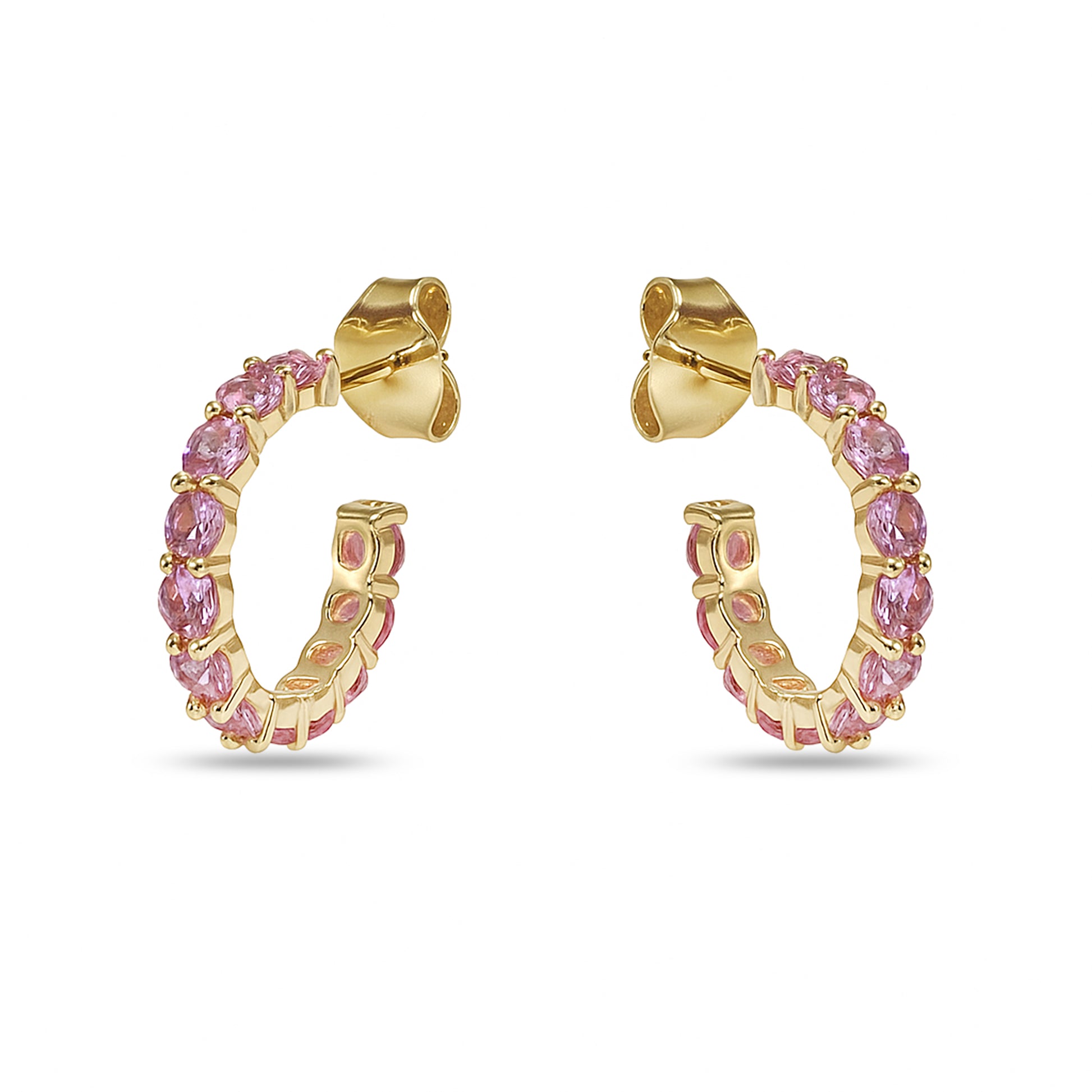 Elevate your everyday elegance with these stunning 14k pink sapphire round cut hoop earrings. Crafted in lustrous 14-karat gold, these earrings showcase brilliant round-cut pink sapphires that catch the light beautifully, adding a sophisticated pop of color to any look. The classic hoop design offers timeless versatility—perfect for pairing with casual outfits or dressing up for special occasions. Whether you're treating yourself or searching for the perfect gift, these radiant sapphire hoops deliver luxury and style that transcends trends.