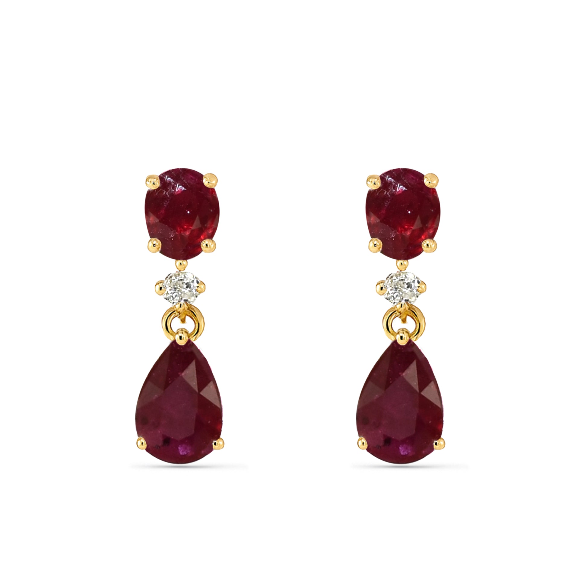 14KY RUBY 0.04CT DIA OVL & PEAR DROP EARR