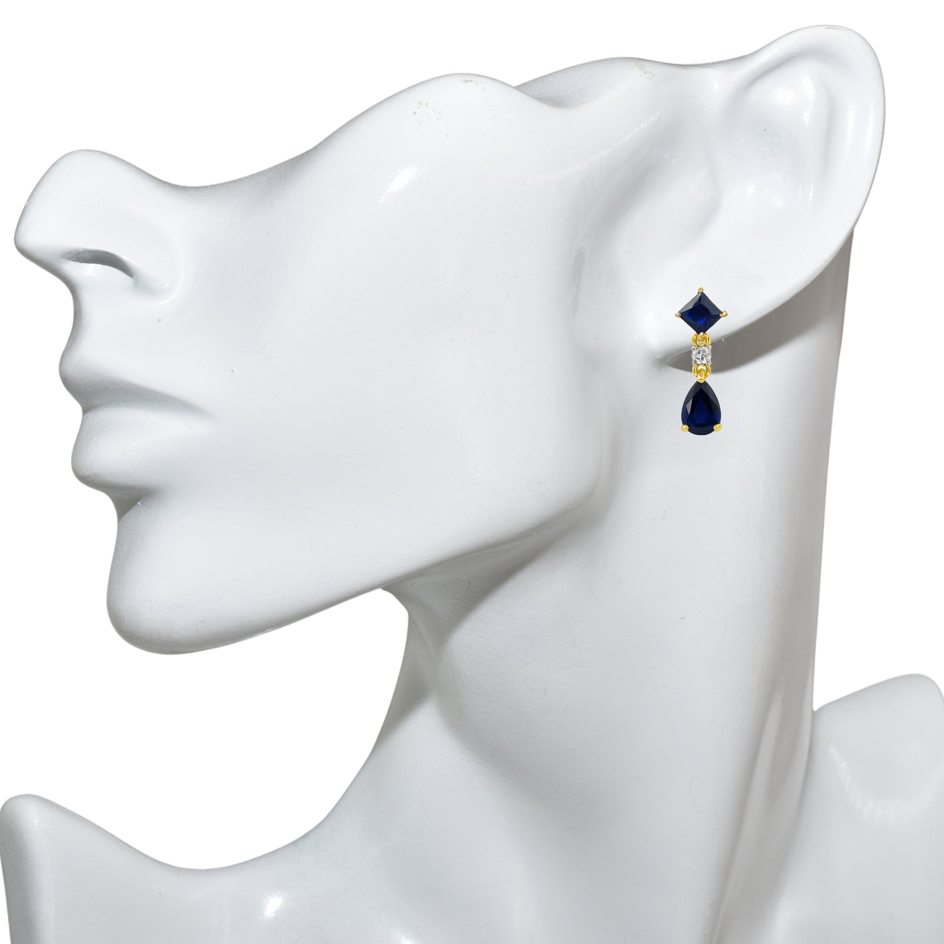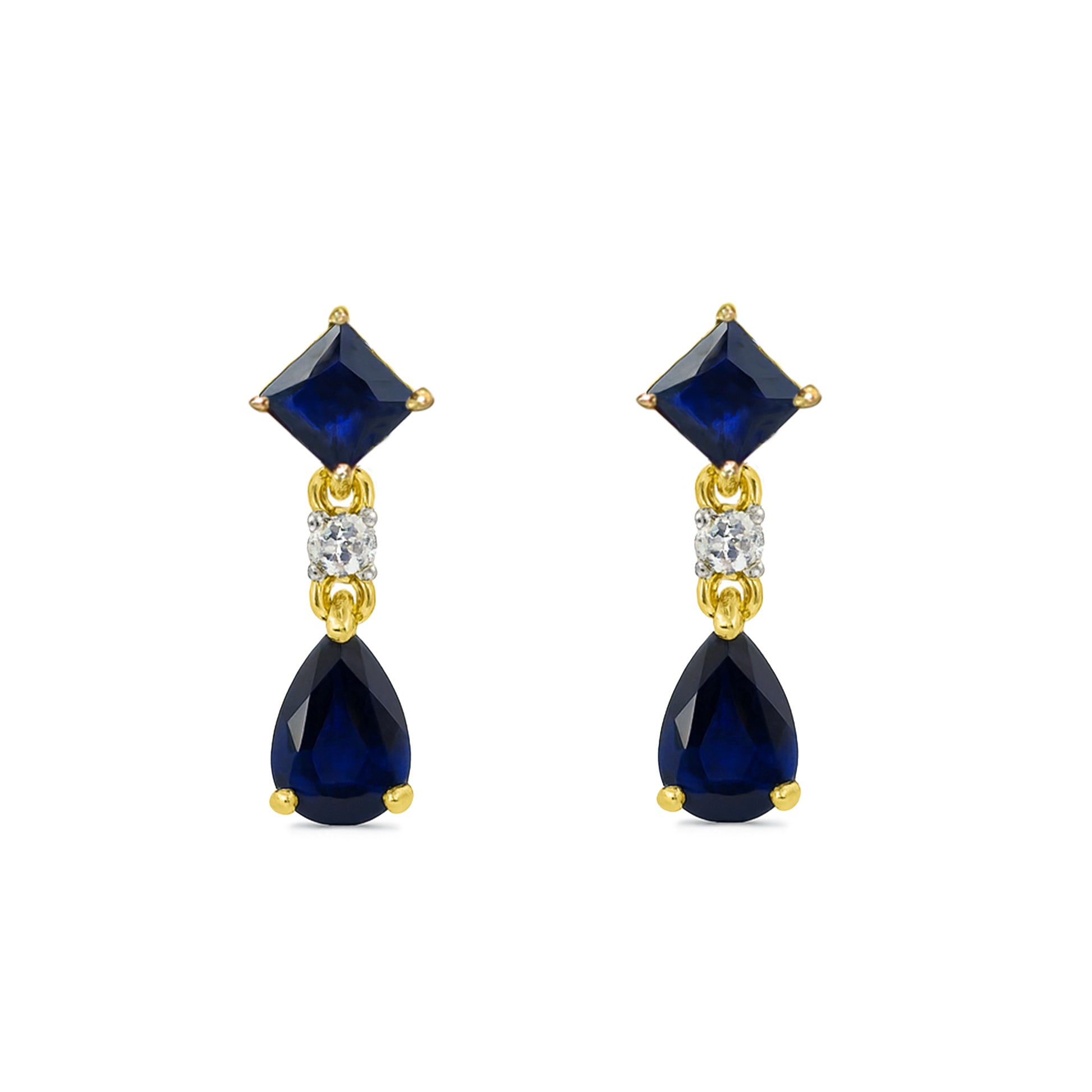 Elevate your jewelry collection with these stunning 14k gold drop earrings, featuring a captivating combination of sapphire and diamond stones. The unique design pairs a brilliant square-cut sapphire with an elegant pear-shaped diamond, creating a sophisticated look that transitions seamlessly from day to evening wear. Crafted in lustrous 14k gold, these earrings offer timeless elegance with contemporary flair. Perfect for special occasions or as a treasured everyday accessory, they make an unforgettable statement piece that celebrates your refined taste in fine jewelry.