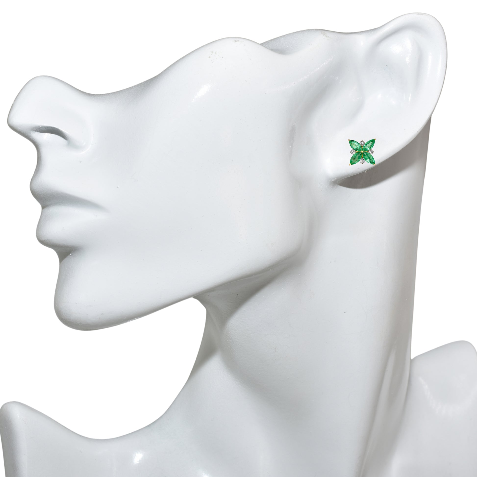 Elevate your jewelry collection with these stunning 14k Emerald Diamond Cluster Flower Earrings. Each piece features a captivating floral design adorned with vibrant emeralds and sparkling diamonds, creating a sophisticated look that transitions seamlessly from day to evening. The 14k gold setting ensures lasting durability and timeless elegance, while the cluster arrangement maximizes brilliance and visual impact. Perfect for special occasions or as a luxurious everyday accessory, these earrings make an unforgettable statement. Experience the perfect blend of natural beauty and fine craftsmanship.