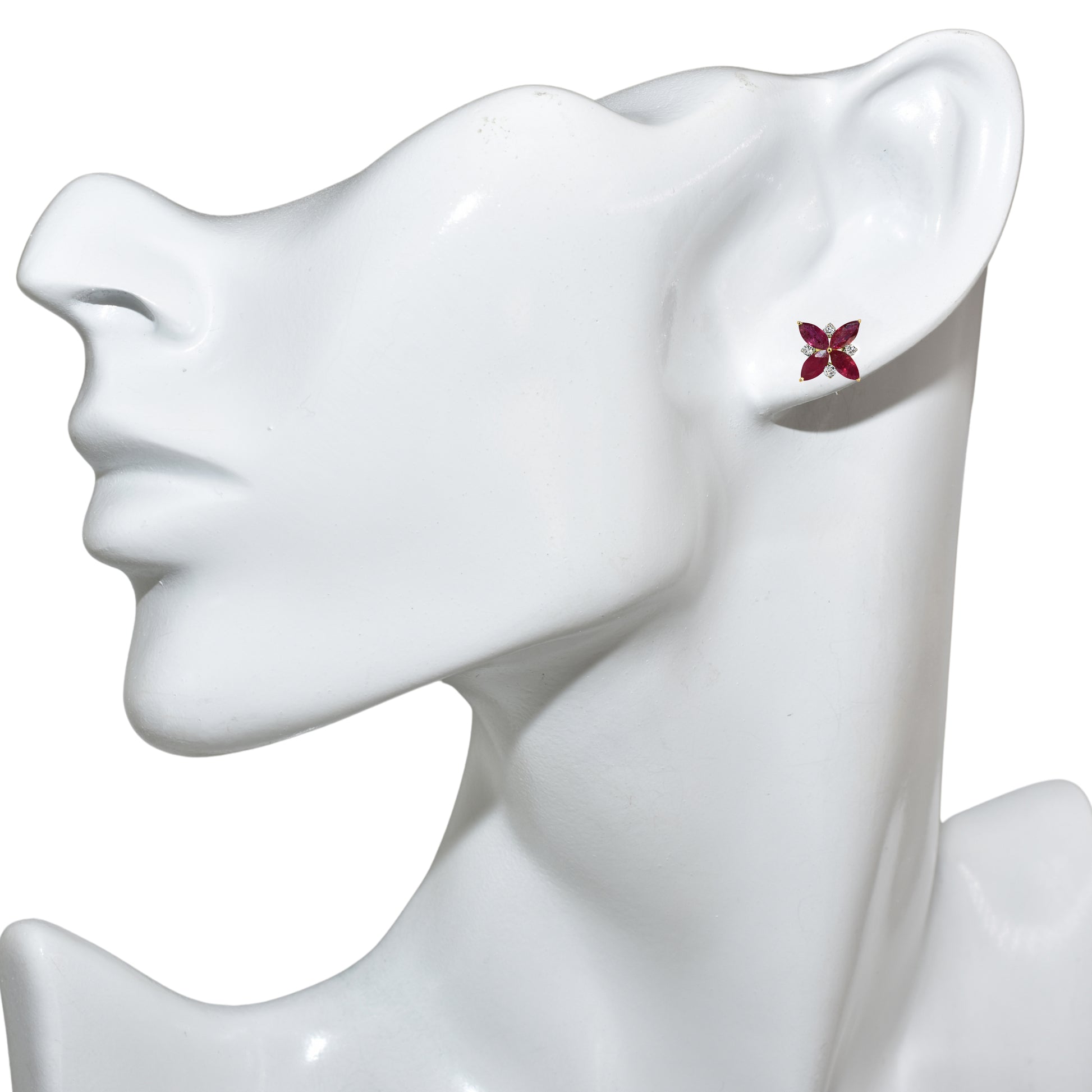 14k Ruby Diamond Cluster Flower Earring