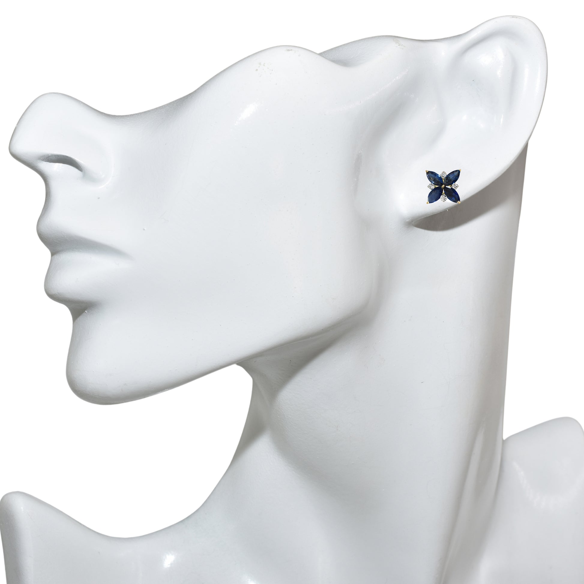 Elevate your jewelry collection with these stunning 14k Sapphire Diamond Cluster Flower Earrings. Each piece features a captivating floral design adorned with rich sapphires and sparkling diamonds, creating an eye-catching arrangement that catches light beautifully. Crafted in lustrous 14k gold, these earrings offer timeless elegance with a modern botanical twist. Perfect for special occasions or everyday luxury, they make an unforgettable statement. Whether you're treating yourself or searching for the ideal gift, these exquisite earrings deliver sophistication and charm that will be treasured for years to come.