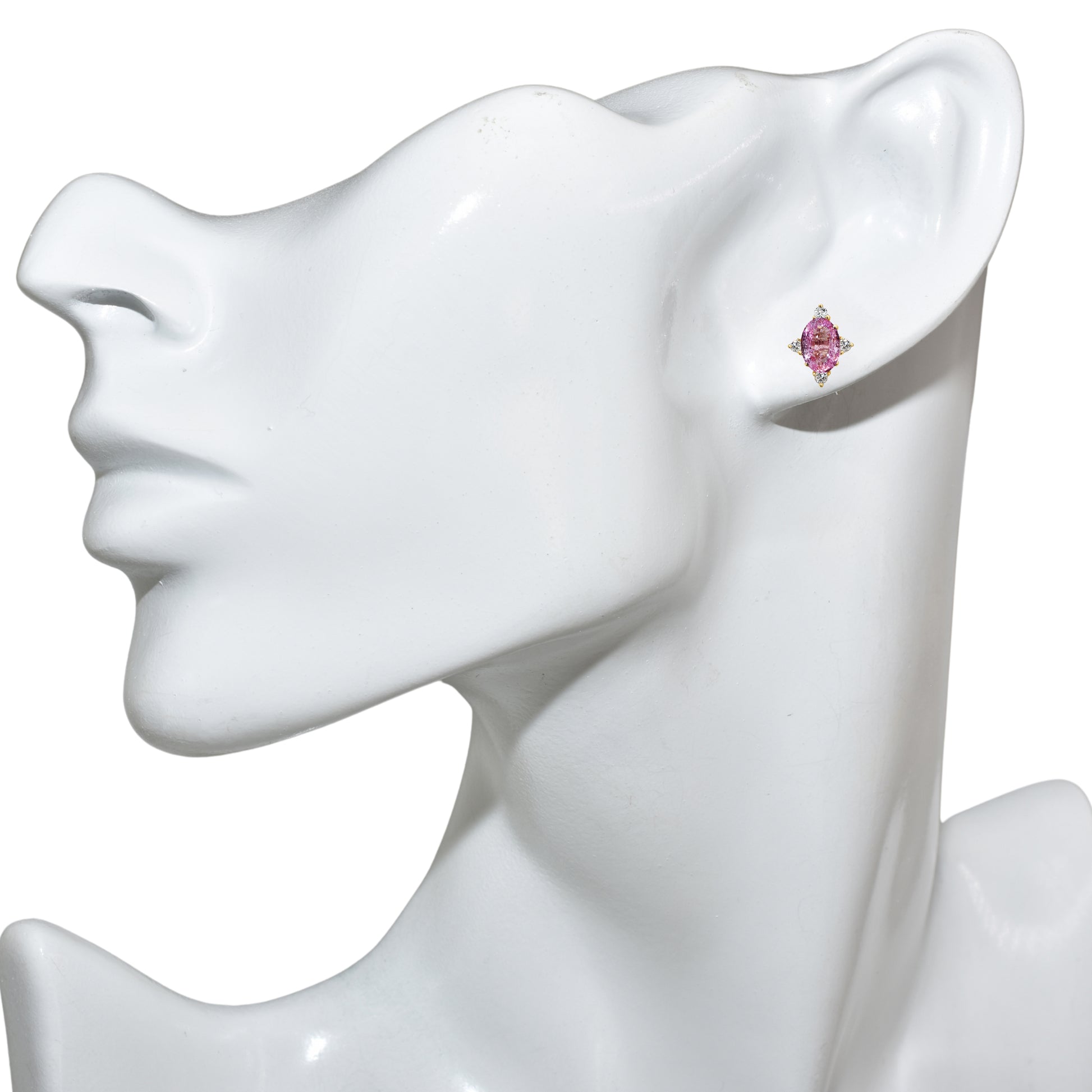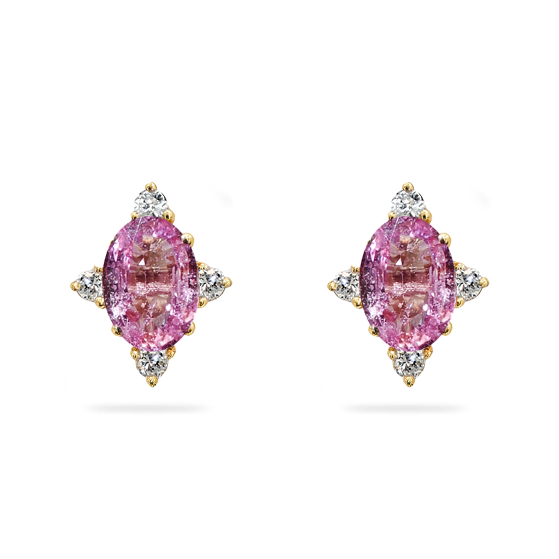 Elevate your jewelry collection with these stunning 14k pink sapphire diamond oval star earrings. Each piece features a captivating pink sapphire center stone paired with sparkling diamonds, creating a sophisticated blend of color and brilliance. The elegant star design adds a touch of celestial charm, while the oval cut maximizes the stone's natural radiance. Crafted in lustrous 14k gold, these earrings offer timeless elegance for both everyday wear and special occasions. A truly distinctive choice for those seeking refined luxury.