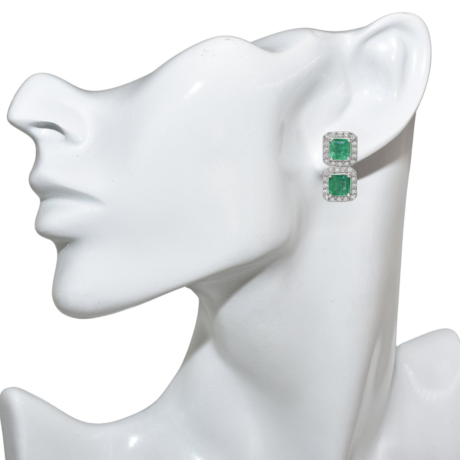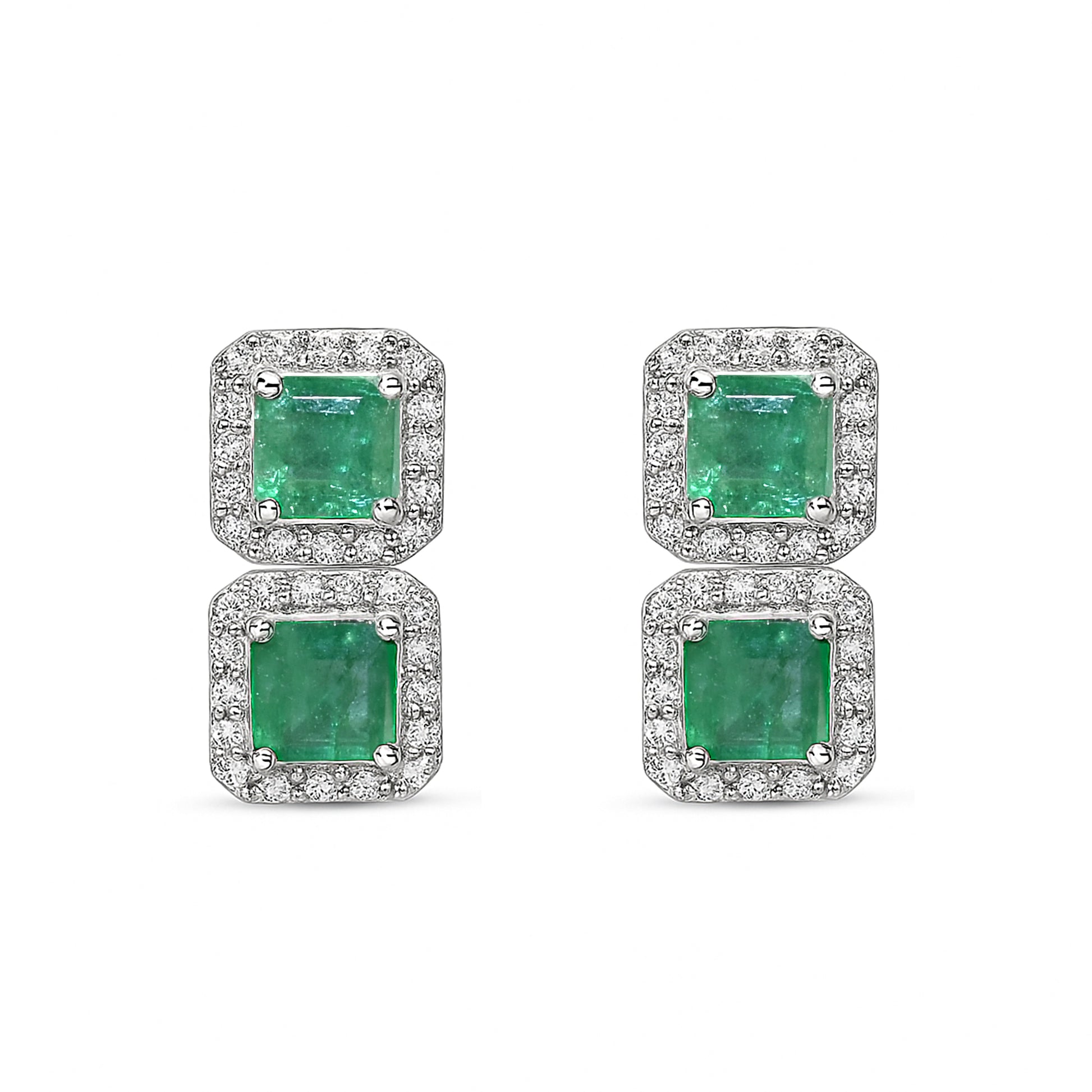 Elevate your jewelry collection with these stunning 14k white gold square earrings, featuring vibrant emeralds accented by sparkling diamonds. The timeless square silhouette offers modern sophistication, while the rich green emeralds bring a pop of color that complements any complexion. Crafted in premium white gold, these earrings deliver lasting durability and a brilliant shine that catches light beautifully. Perfect for special occasions or everyday elegance, they're a versatile investment piece that transforms any look from ordinary to extraordinary.