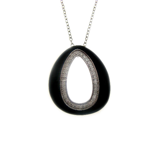 14k Black Onyx Diamond Open Shape Pendant Necklace
