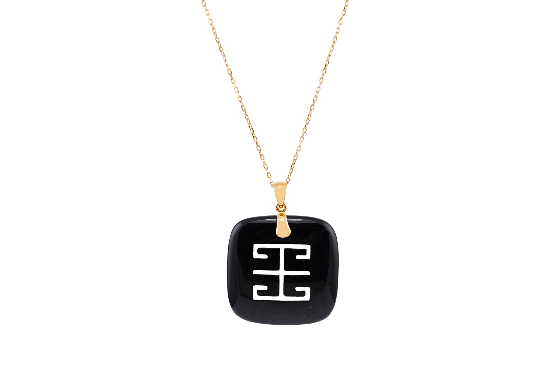 14KY LONG LIFE BLACK ONYX PENDANT NECKLACE 17"