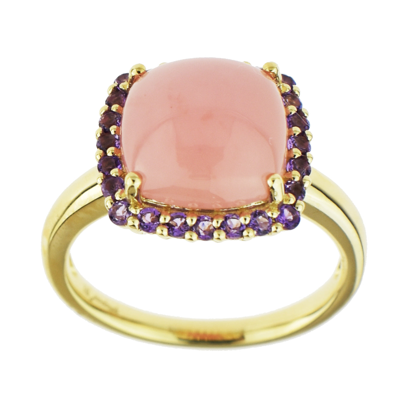 14k Guava Quartz Cushion & Amethyst Ring