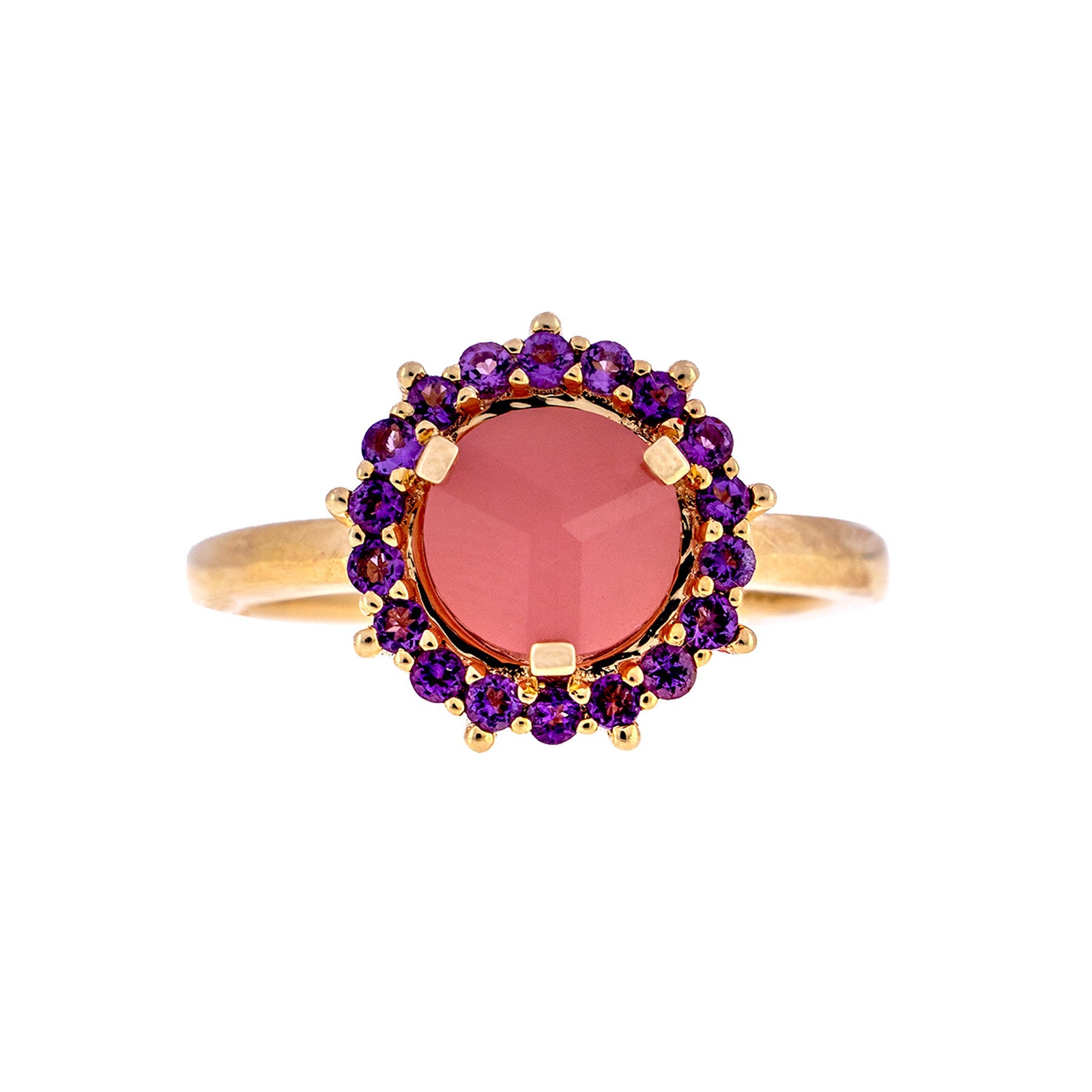 14k Guava Quartz Round 3D Cut Amethyst Ring