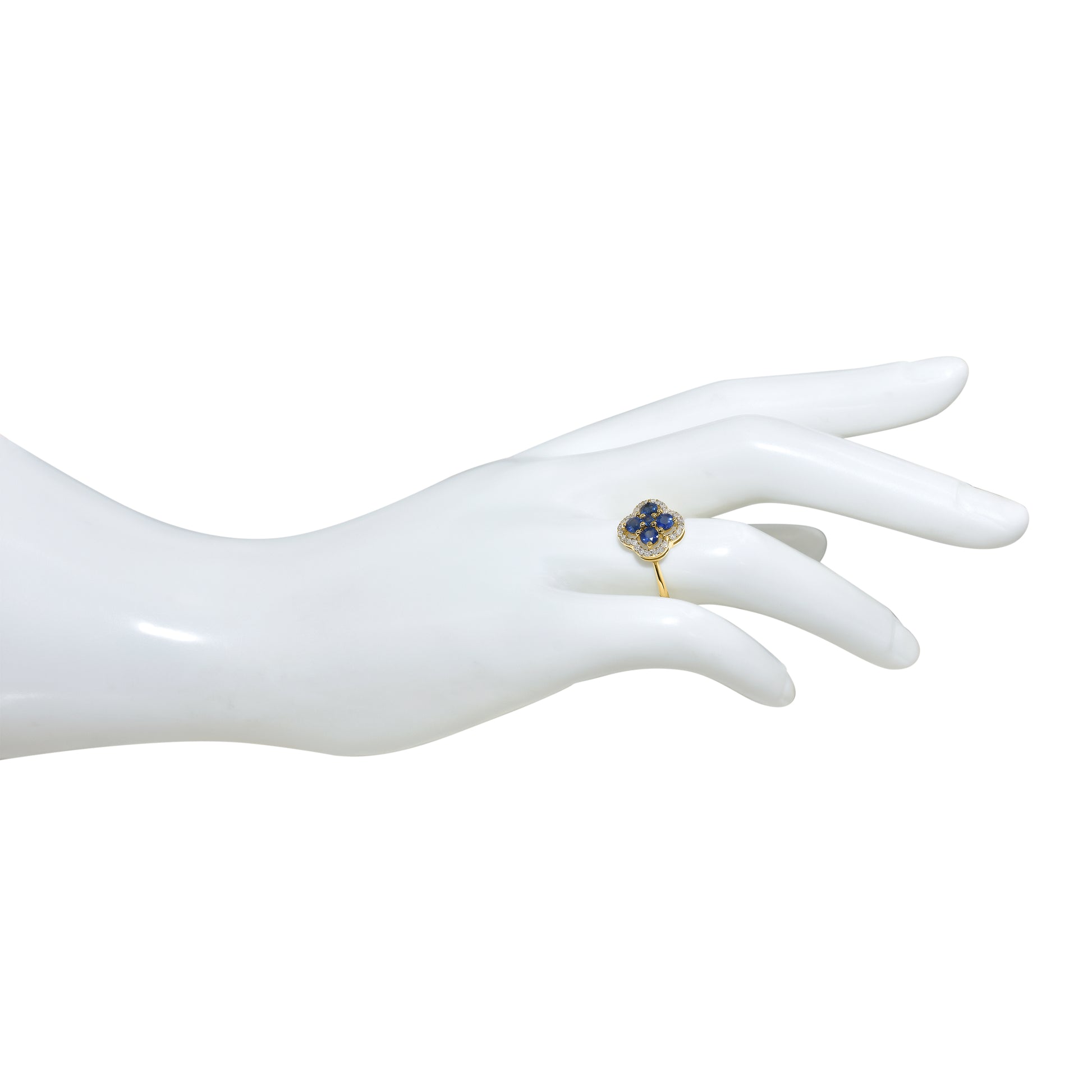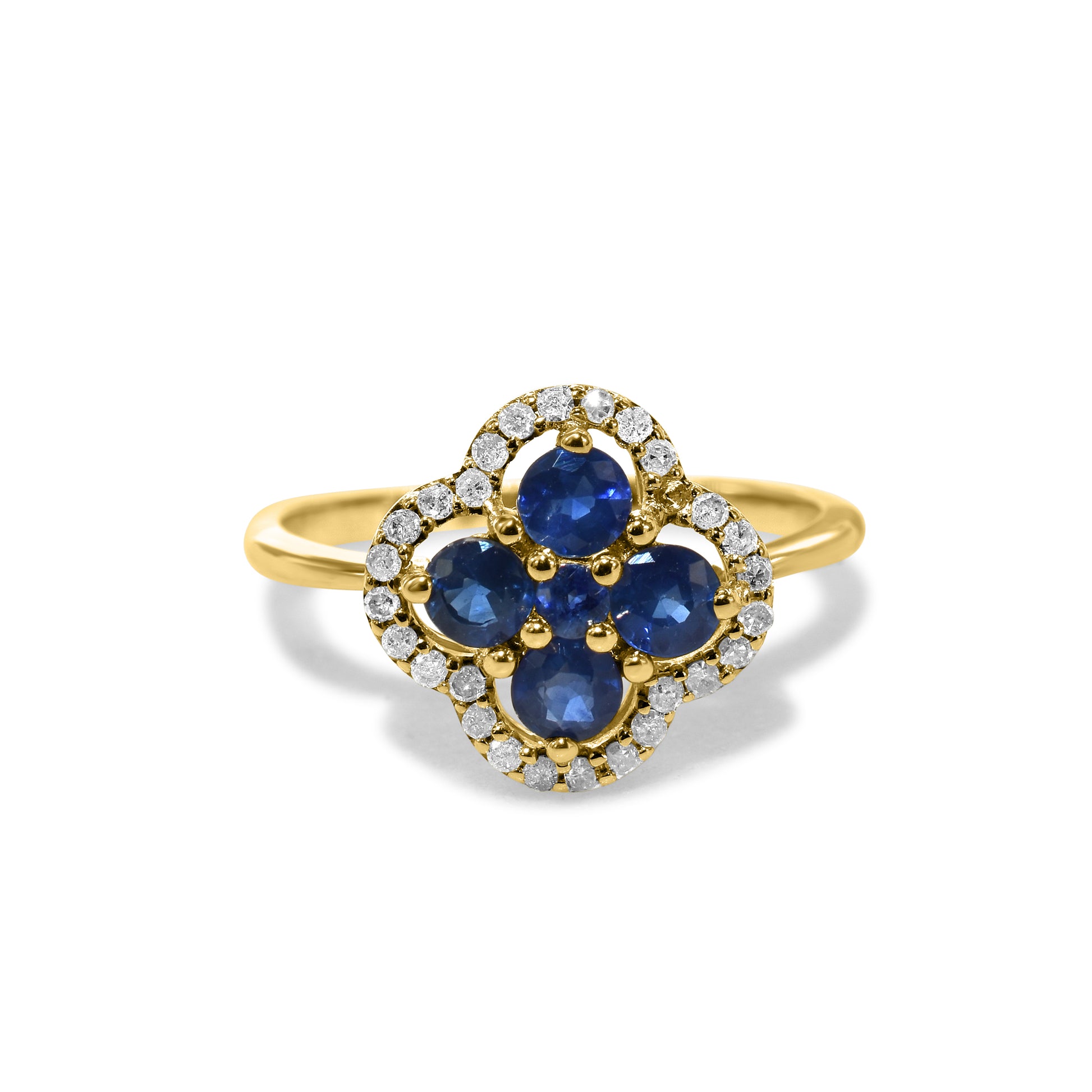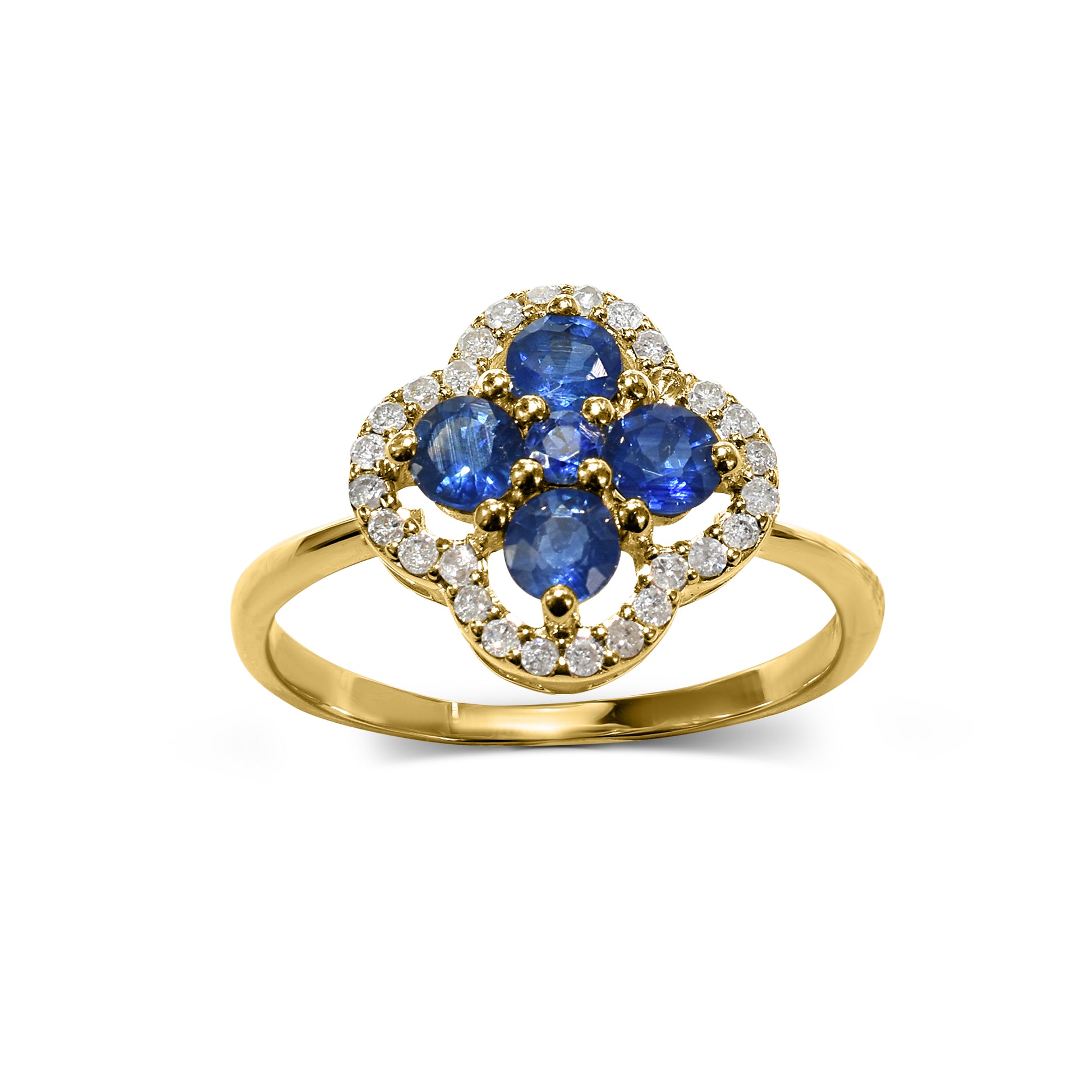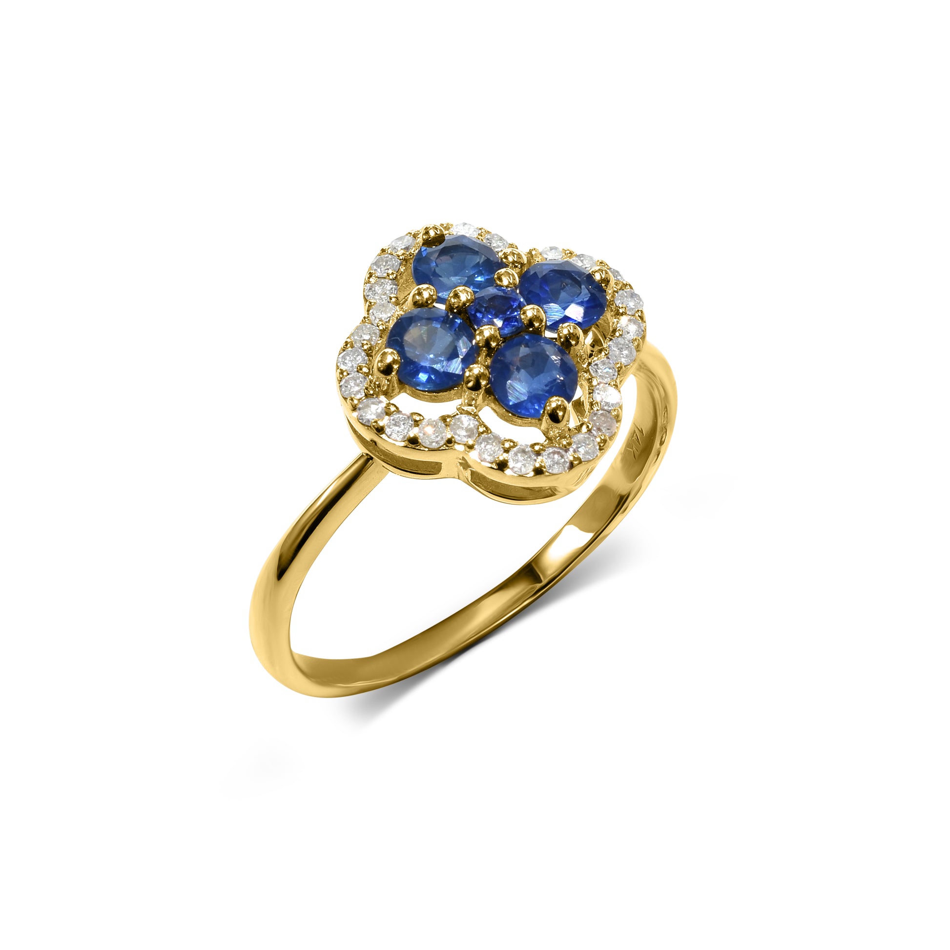 14k Blue Sapphire Diamond Flower Ring