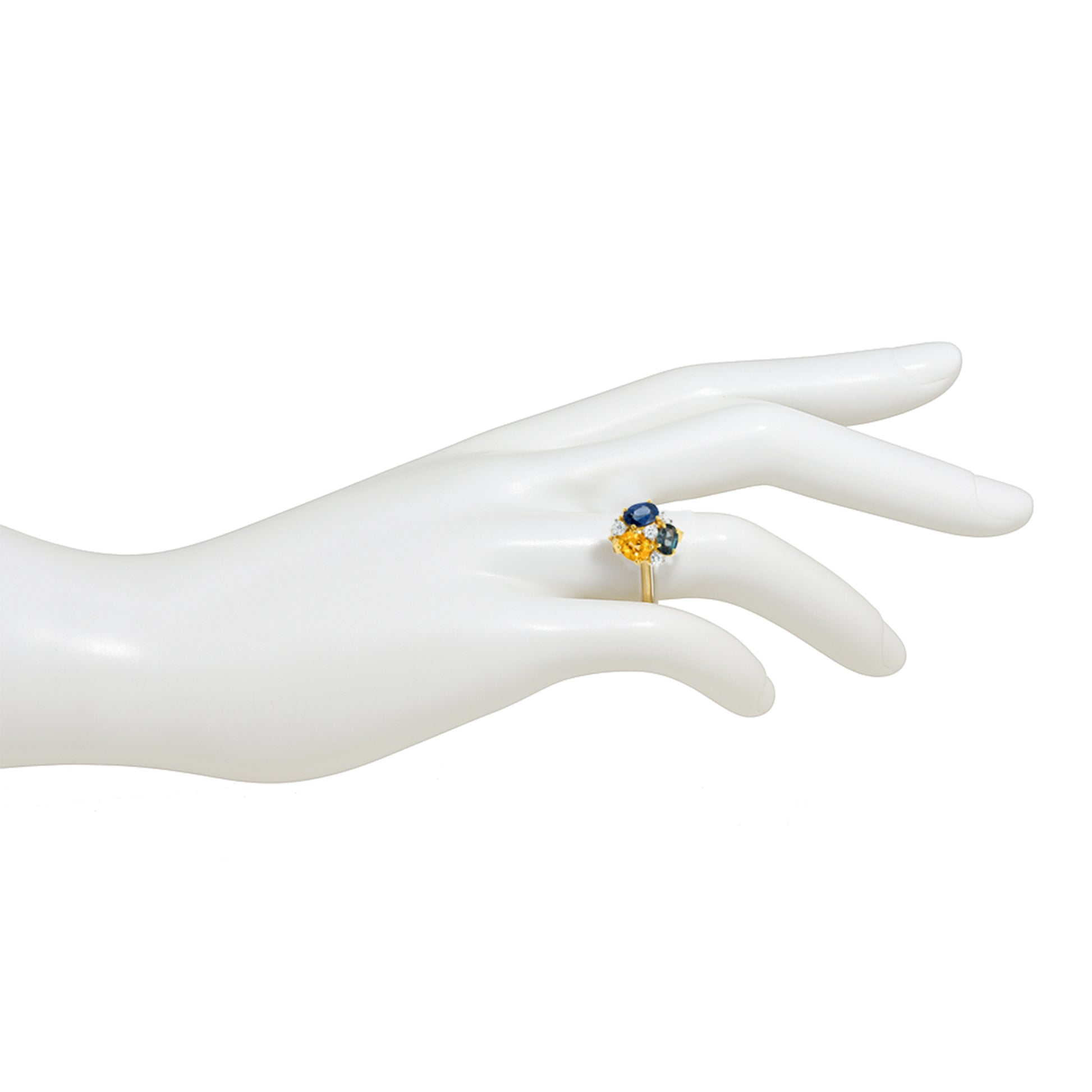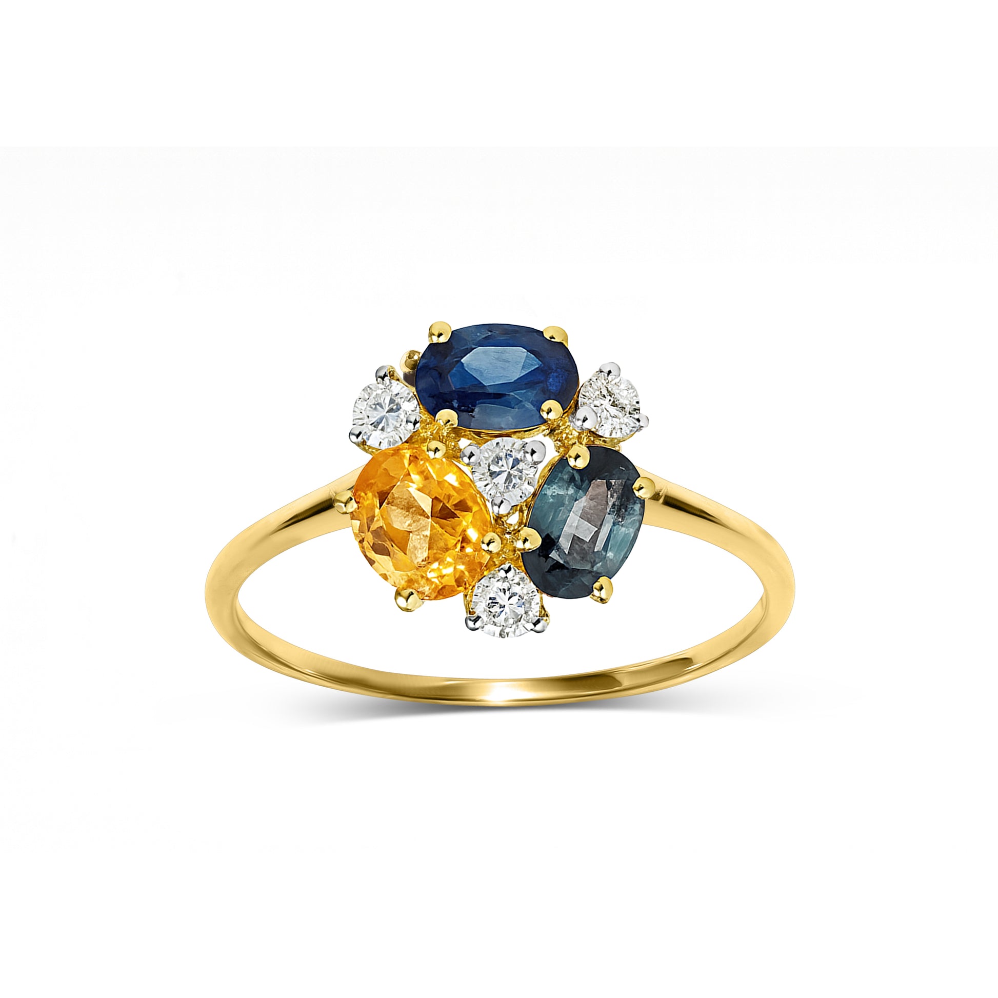 Elevate your elegance with this stunning 14k gold ring, featuring a vibrant cluster of multi-colored sapphires beautifully accented by sparkling diamonds. Designed to resemble a delicate flower, it brings a touch of natural beauty and timeless charm to any outfit. Perfect for special occasions or everyday sophistication, this ring promises to captivate and shine wherever you go.