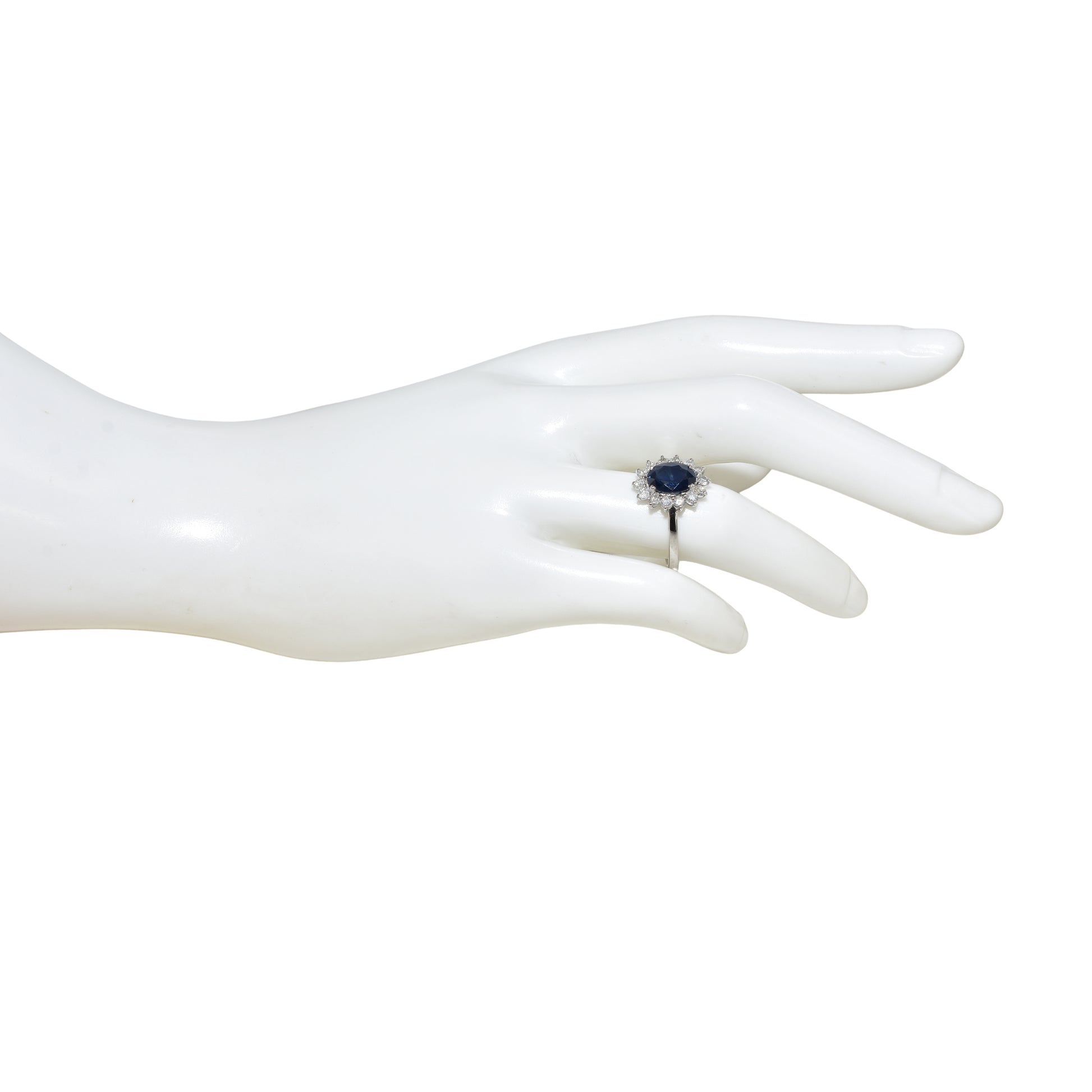 This elegant 14k white gold ring features a stunning oval-cut sapphire complemented by sparkling diamonds, creating a timeless and sophisticated look. Perfect for special occasions or everyday elegance, its classic design enhances any outfit while the durable materials ensure lasting beauty. Add a touch of luxury to your jewelry collection with this captivating piece.