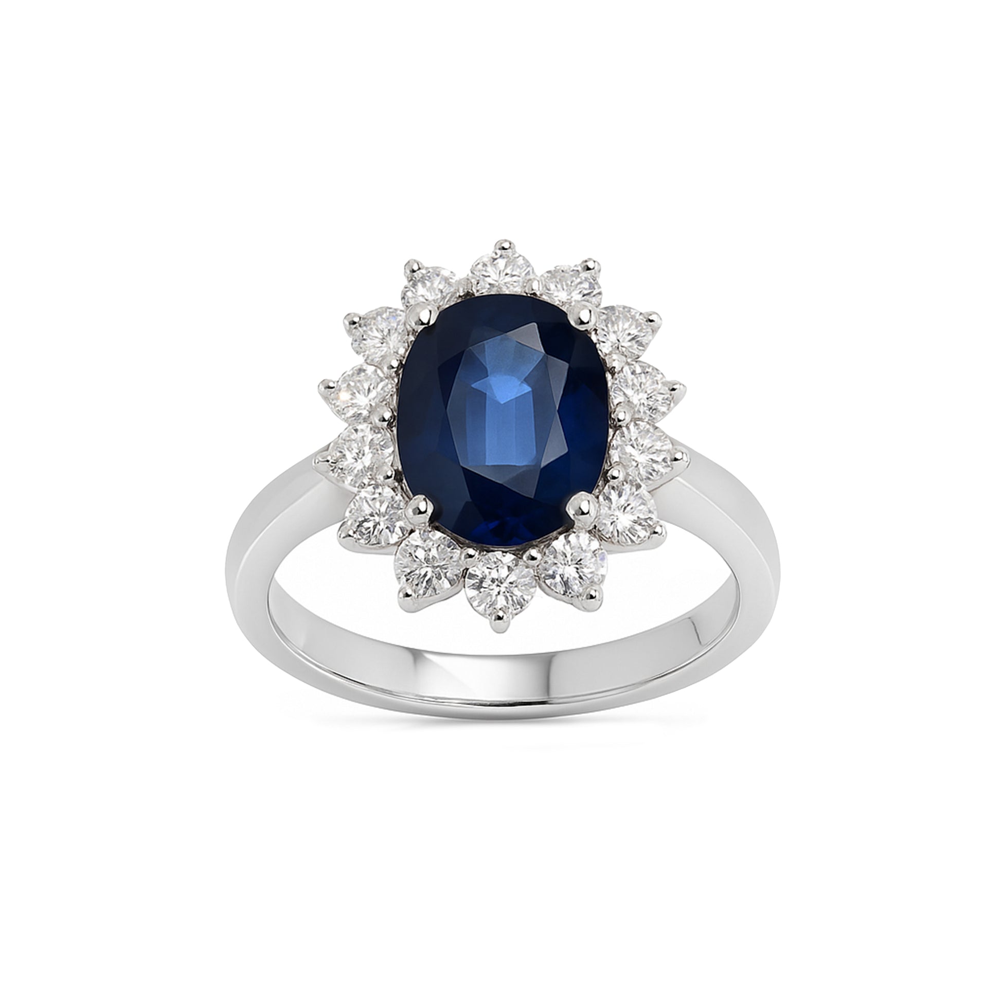 14k White Gold Sapphire Diamond Oval Cut Ring