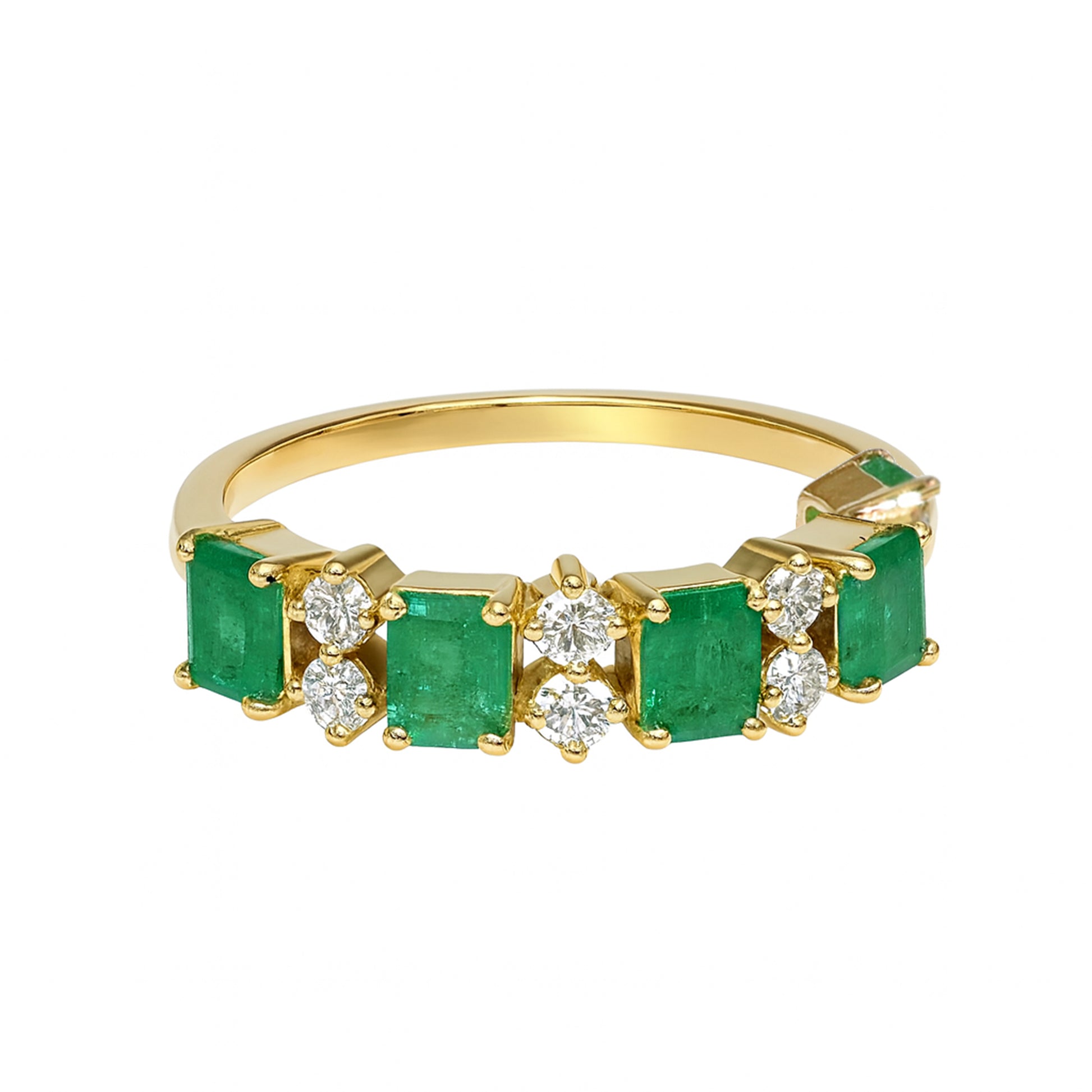 Elevate your elegance with this 14k gold ring featuring a captivating emerald centerpiece surrounded by sparkling diamonds. Its multi-stone design adds depth and brilliance, making it perfect for special occasions or daily luxury. Experience timeless beauty and refined craftsmanship in one exquisite piece.