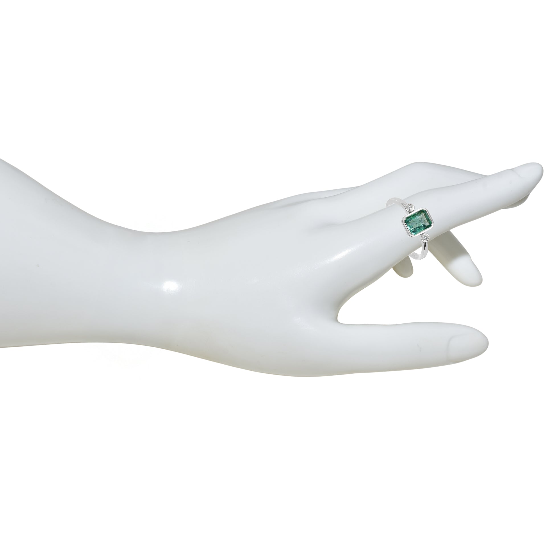 14k White Gold Emerald Diamond Rectangle Bezel Ring