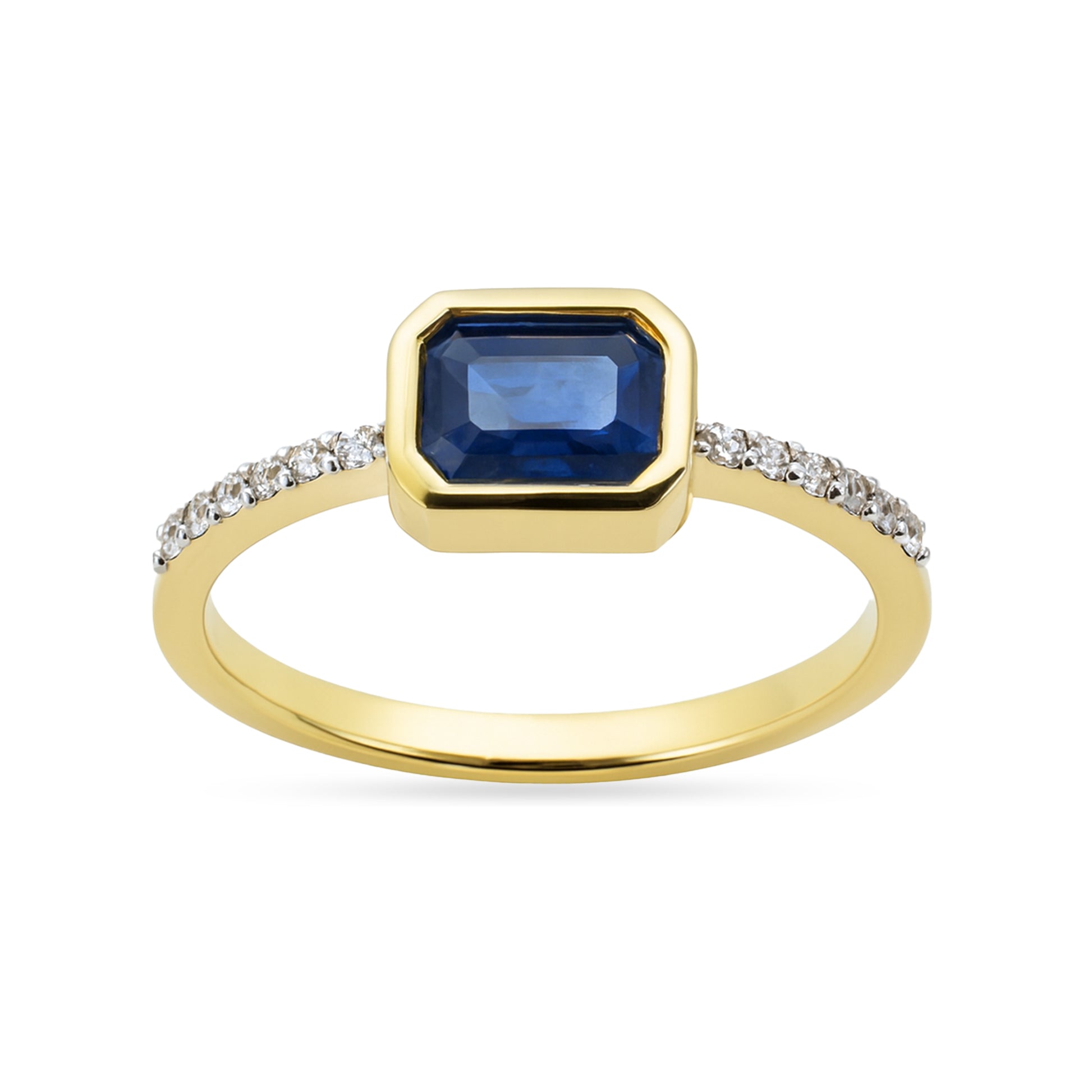 14KY SAPP 0.12CT DIA RCTNGL BZ RING