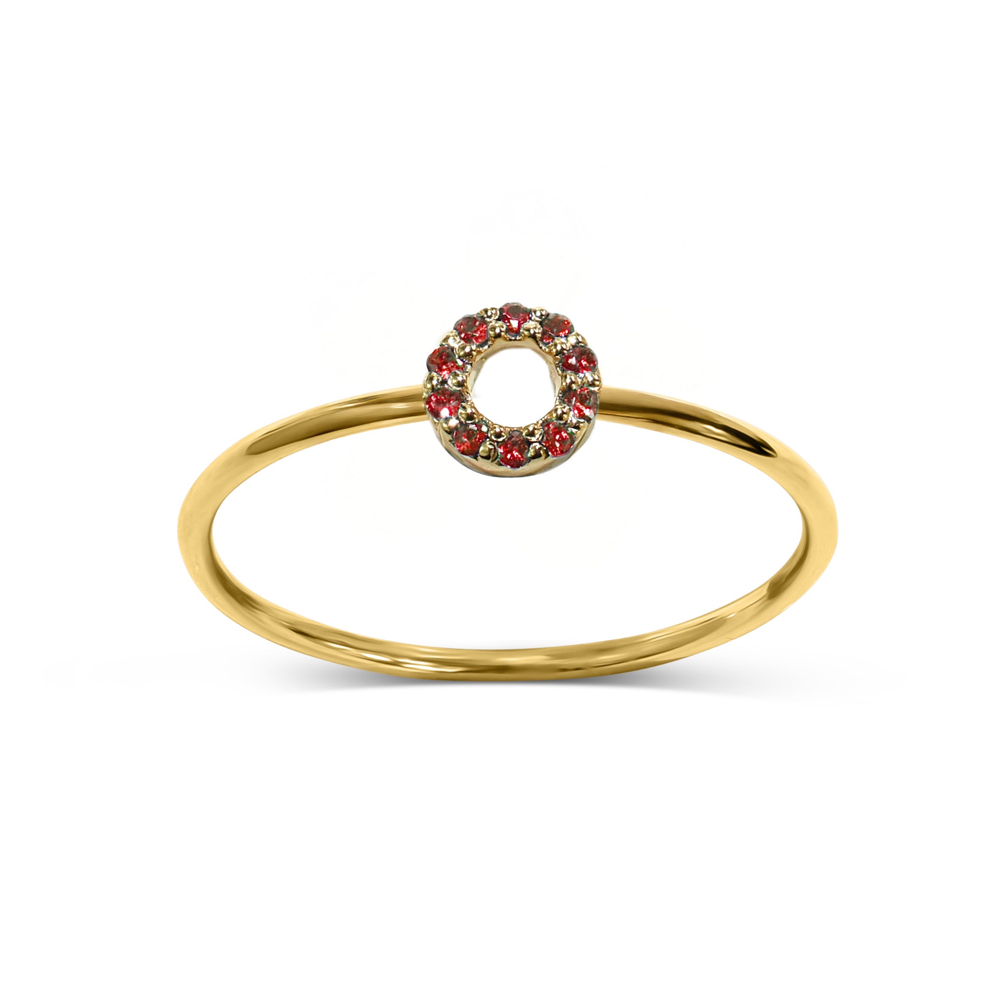Elevate your style with this exquisite 14k Ruby Circle Ring, featuring a vibrant ruby set in a delicate circular design. Crafted with premium 14k gold, this ring combines timeless elegance with a bold splash of color, perfect for adding a touch of luxury to any outfit. Its classic yet striking look makes it an ideal choice for both everyday wear and special occasions. Make a statement of sophistication and charm with this beautifully crafted piece.