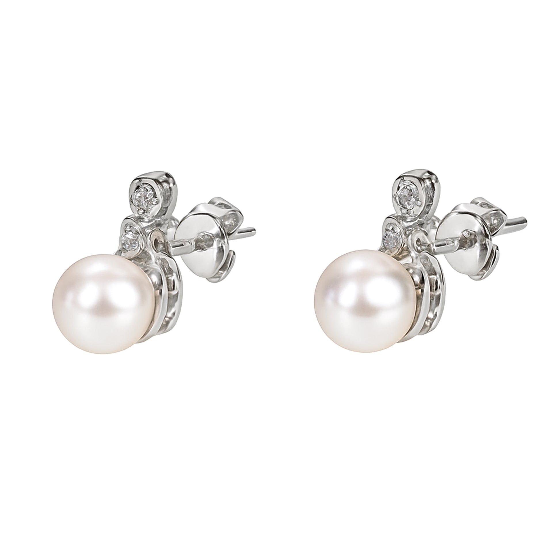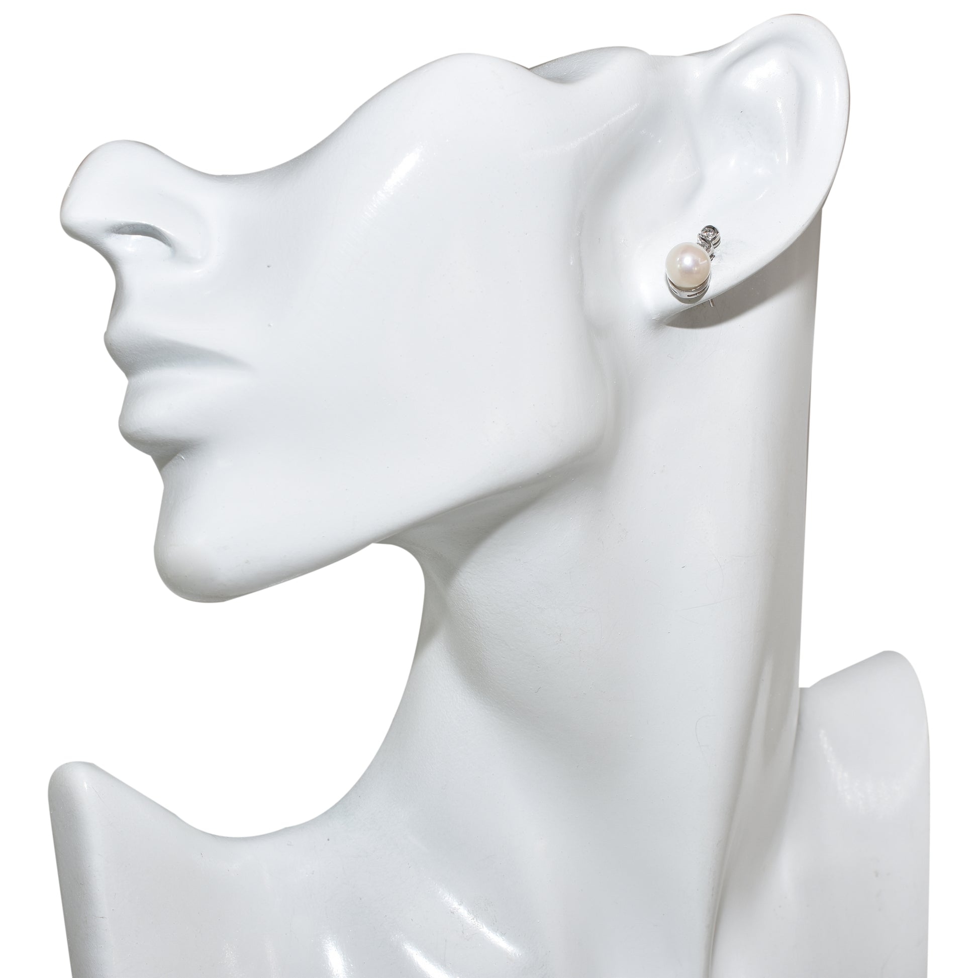 Elevate your elegance with these 14k white gold earrings, featuring lustrous cultured pearls accented by sparkling diamonds. Their classic design enhances any outfit, offering timeless sophistication and a subtle shimmer perfect for both daily wear and special occasions. Experience refined beauty that complements your style effortlessly.