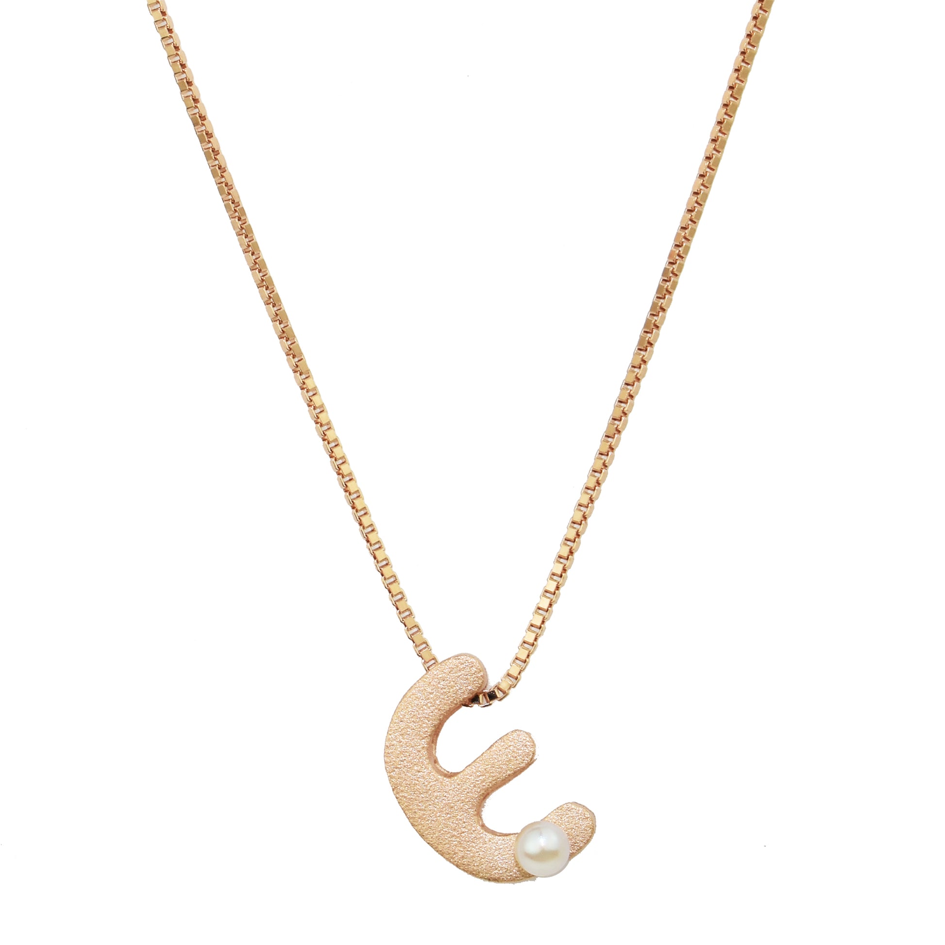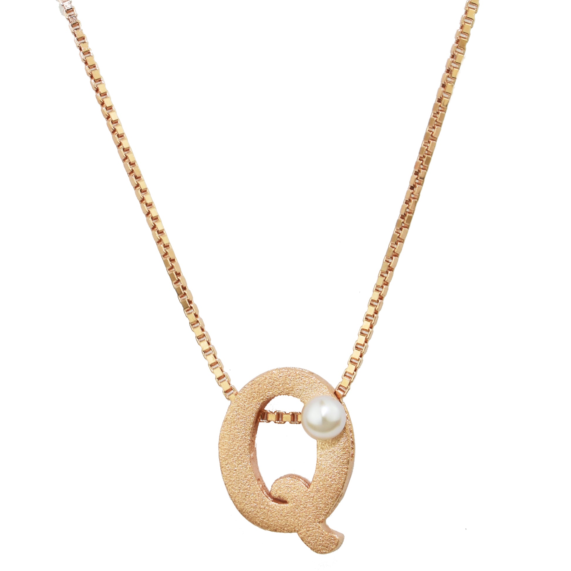 Sterling Silver Rose Gold Plated Pearl Initial Necklace