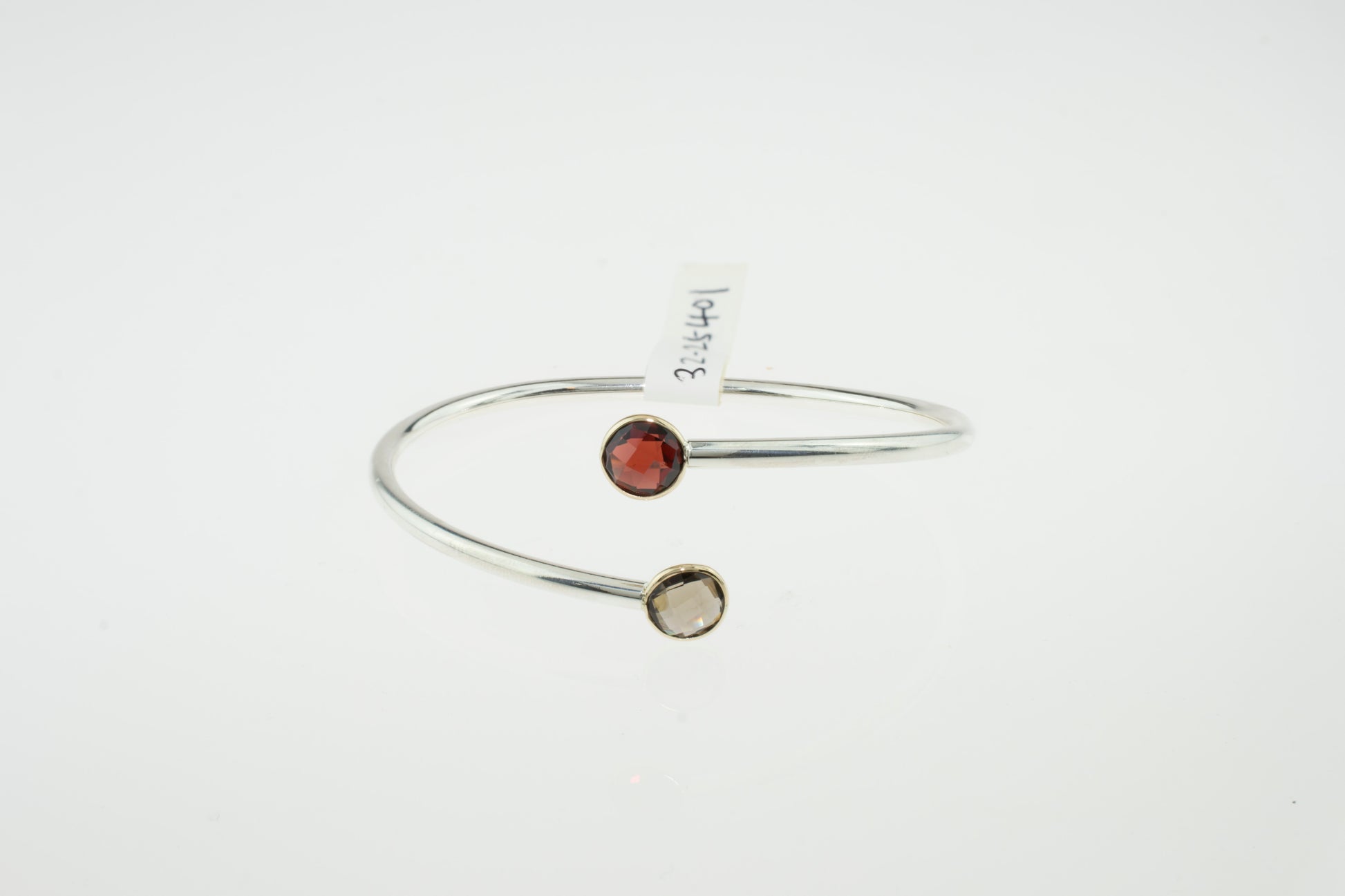 S.SILVER/14KY GARNET SMOKY QZ BYPASS BANGLE