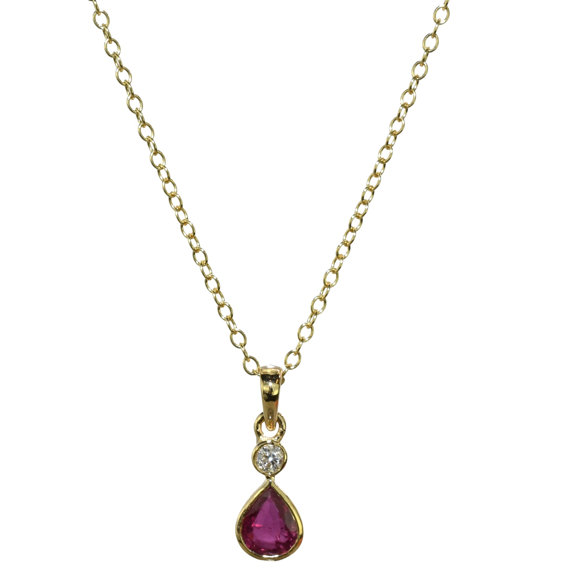 Elevate your elegance with our 18k Ruby Drop Shape Diamond Necklace. This stunning piece features a rich ruby gemstone in an alluring teardrop silhouette, surrounded by brilliant diamonds that catch the light with every movement. Crafted from premium 18k gold, this necklace makes a bold statement while remaining timeless enough for everyday luxury. Perfect for special occasions or as an unforgettable gift that will be treasured for generations.