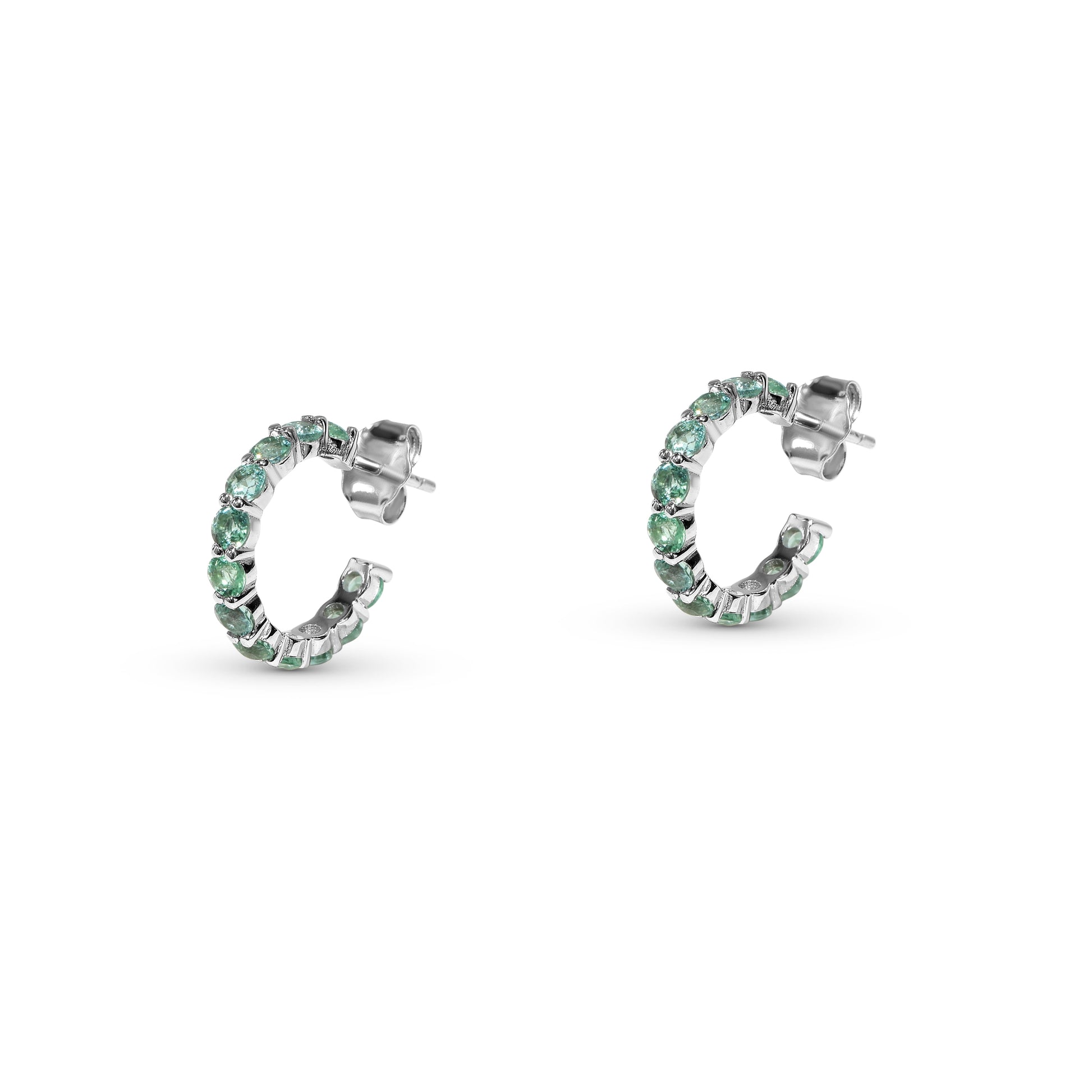Elevate your style with our stunning 18k White Gold Hoop Emerald Earrings. These luxurious hoops feature vibrant emeralds that catch the light with every movement, set in premium white gold for maximum brilliance. Perfect for special occasions or adding a touch of elegance to everyday wear. Make a statement that speaks of refined taste and timeless sophistication.