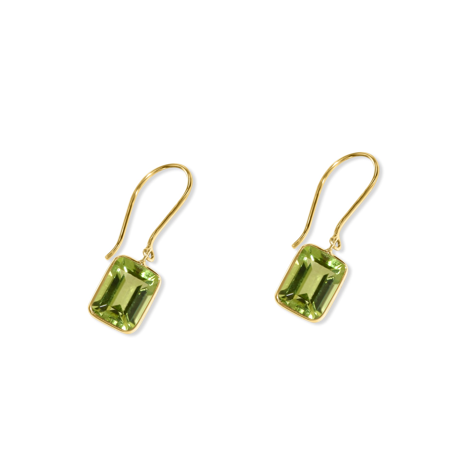Elevate your style with these stunning 18k gold earrings featuring vibrant rectangle-shaped peridot stones. Their unique shape and rich green hue add a fresh, elegant touch to any outfit, making them perfect for both everyday wear and special occasions. Crafted with quality and designed to catch the light beautifully, these earrings offer a timeless accessory that enhances your natural glow.