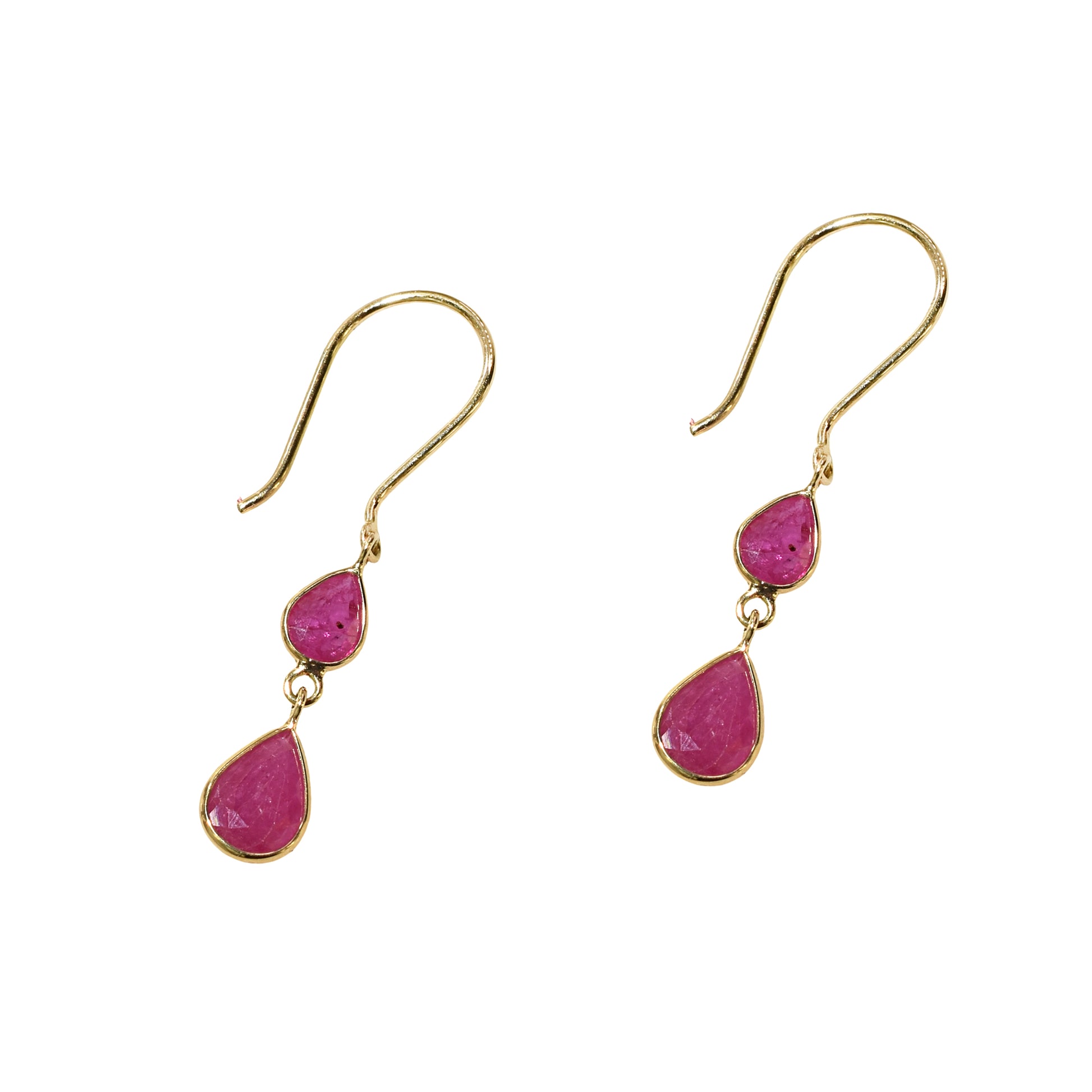 Elevate your elegance with this 18k gold pear-shaped ruby earring. The vibrant ruby centerpiece offers a timeless pop of color, while the refined pear shape adds a graceful touch to any outfit. Crafted in high-quality 18k gold, this earring ensures lasting beauty and comfort, making it a perfect statement piece for both everyday wear and special occasions.