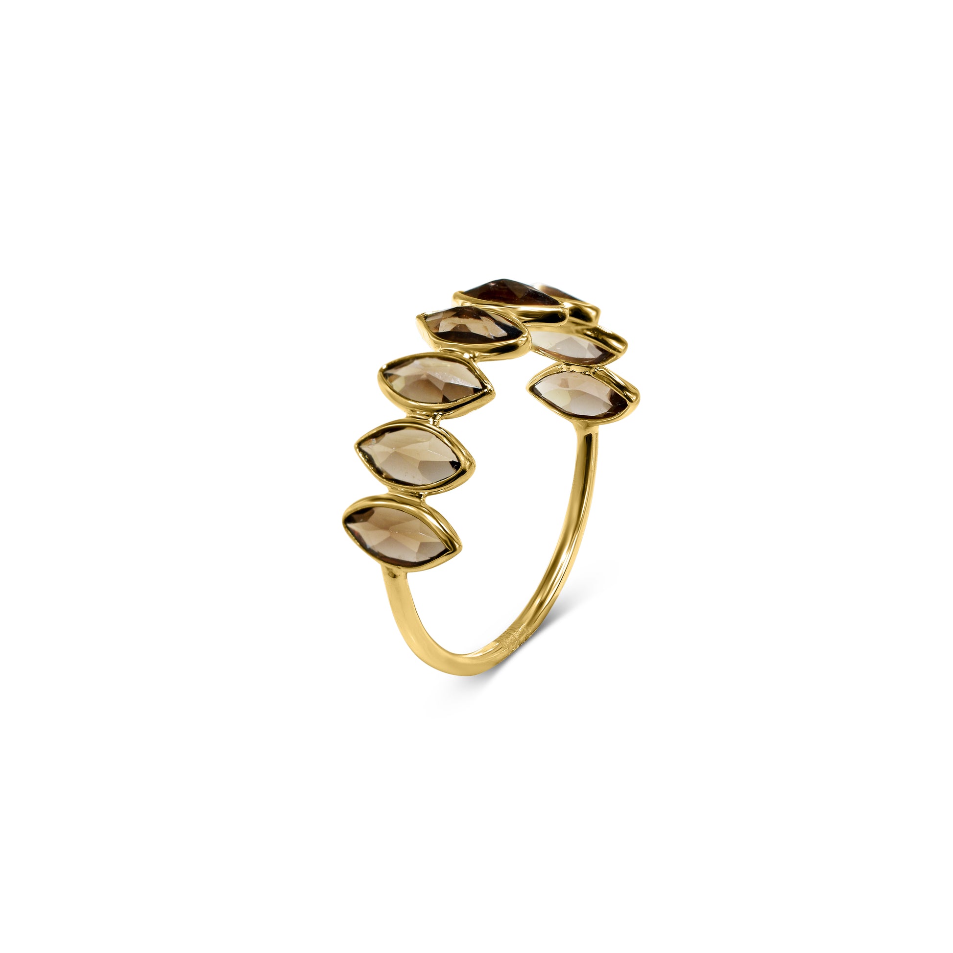 18k Smoky Quartz Marquise 1 Row Ring
