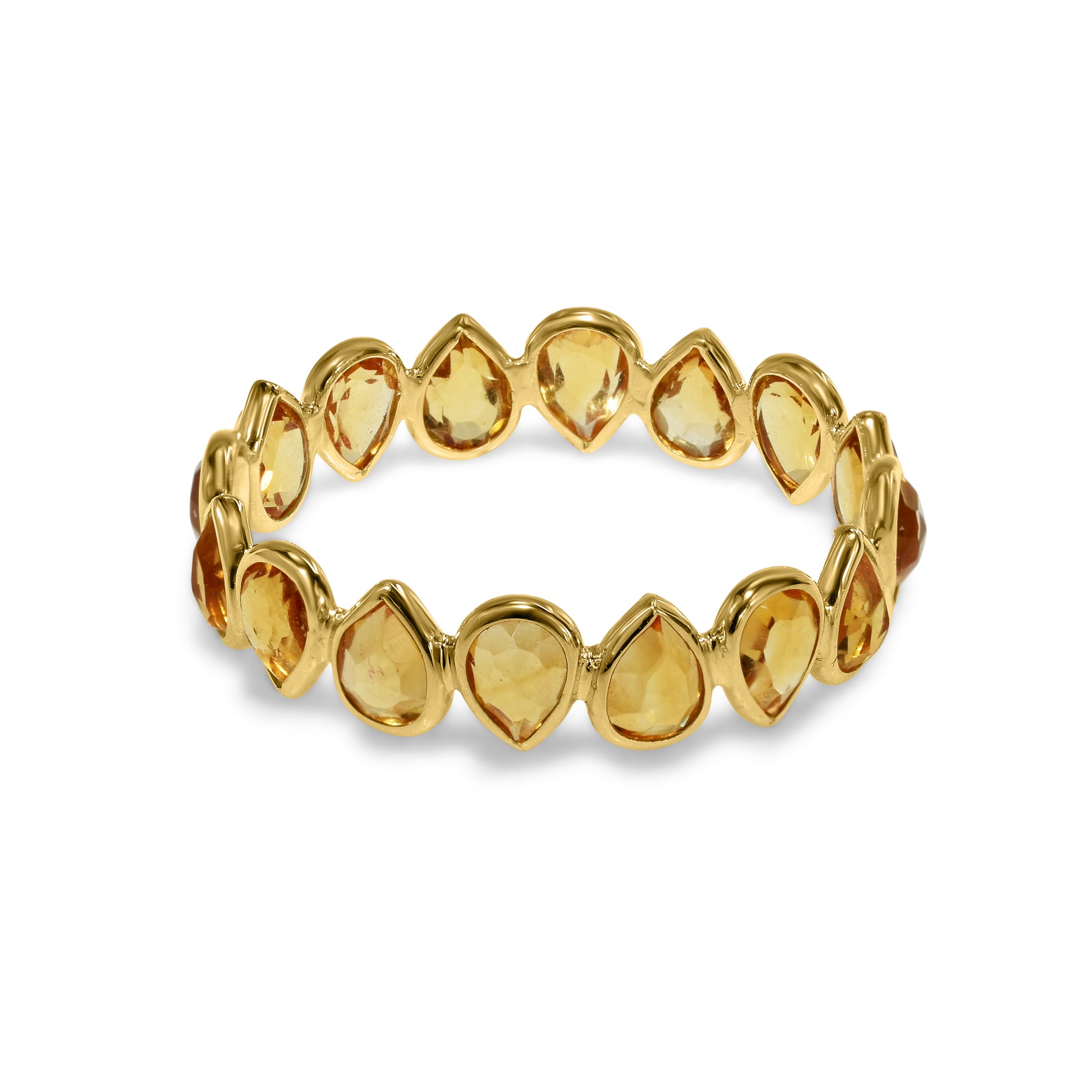 Indulge yourself with this stunning 18k Tourmaline Pear Shape One Row Ring. Crafted with the finest materials, this ring boasts a unique pear shape design and is adorned with sparkling tourmaline stones. Elevate any outfit and make a bold statement with this one-of-a-kind ring.