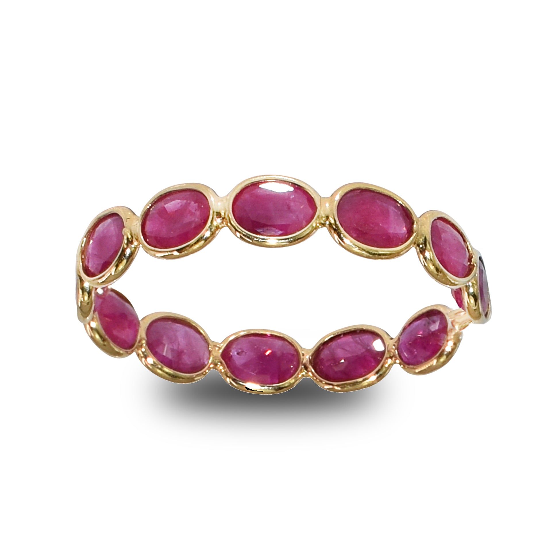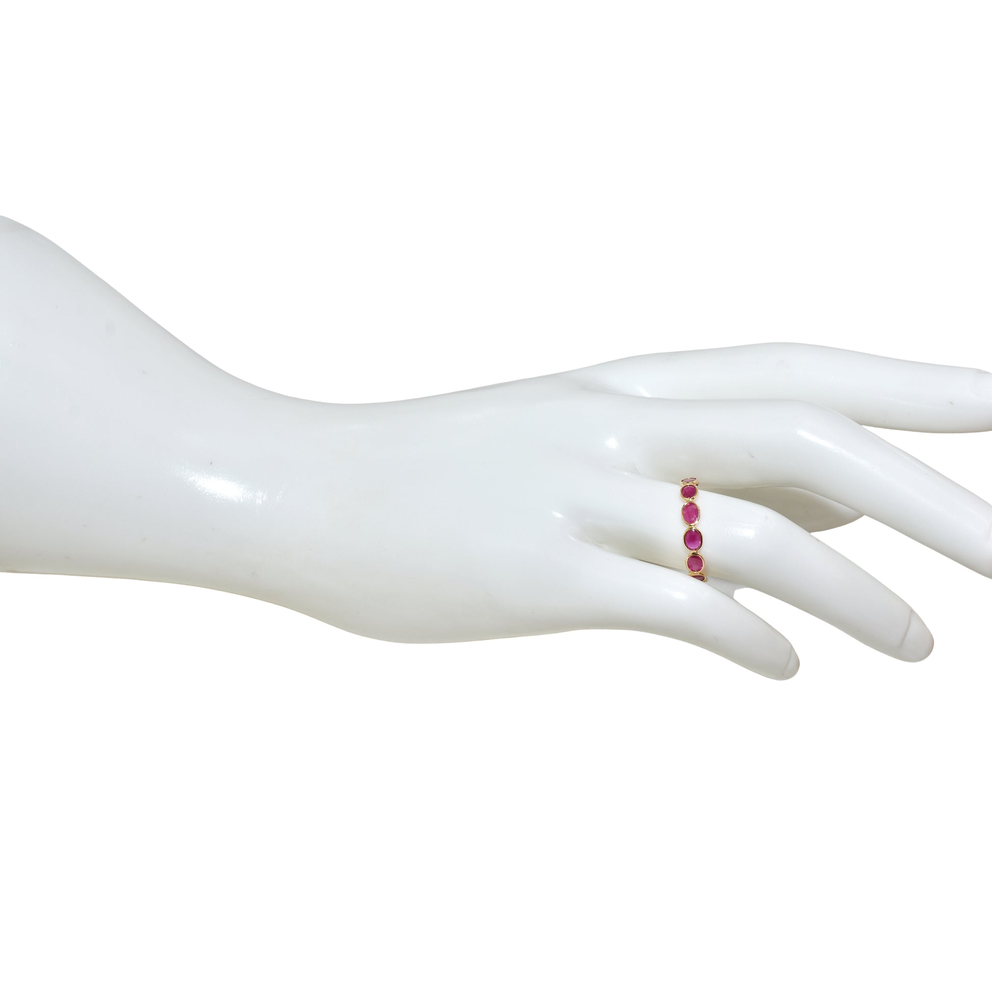 Elevate your elegance with this 18k gold ring featuring a stunning oval-shaped design adorned with a single row of vibrant rubies. Each ruby’s rich red hue adds timeless sophistication, making it perfect for both everyday wear and special occasions. Crafted to capture attention, this ring combines classic beauty with lasting quality, enhancing your style with every glance.