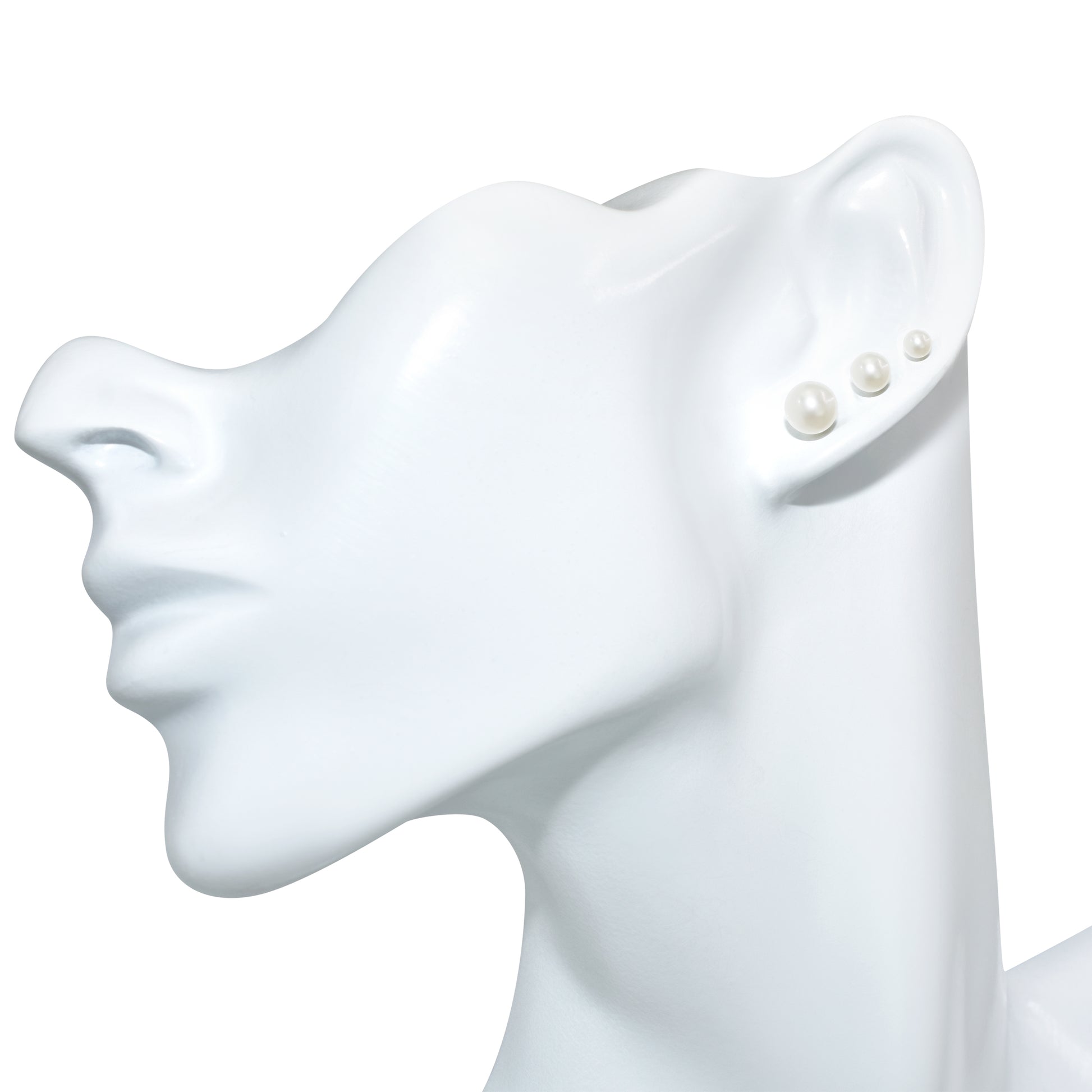 Complete your jewelry collection with this stunning 14k White Pearl Stud Earring Set of 3. Made with gorgeous pearls and high quality 14k white gold, these earrings are versatile and perfect for any occasion. Elevate your look with the classic elegance and glamour of pearls.