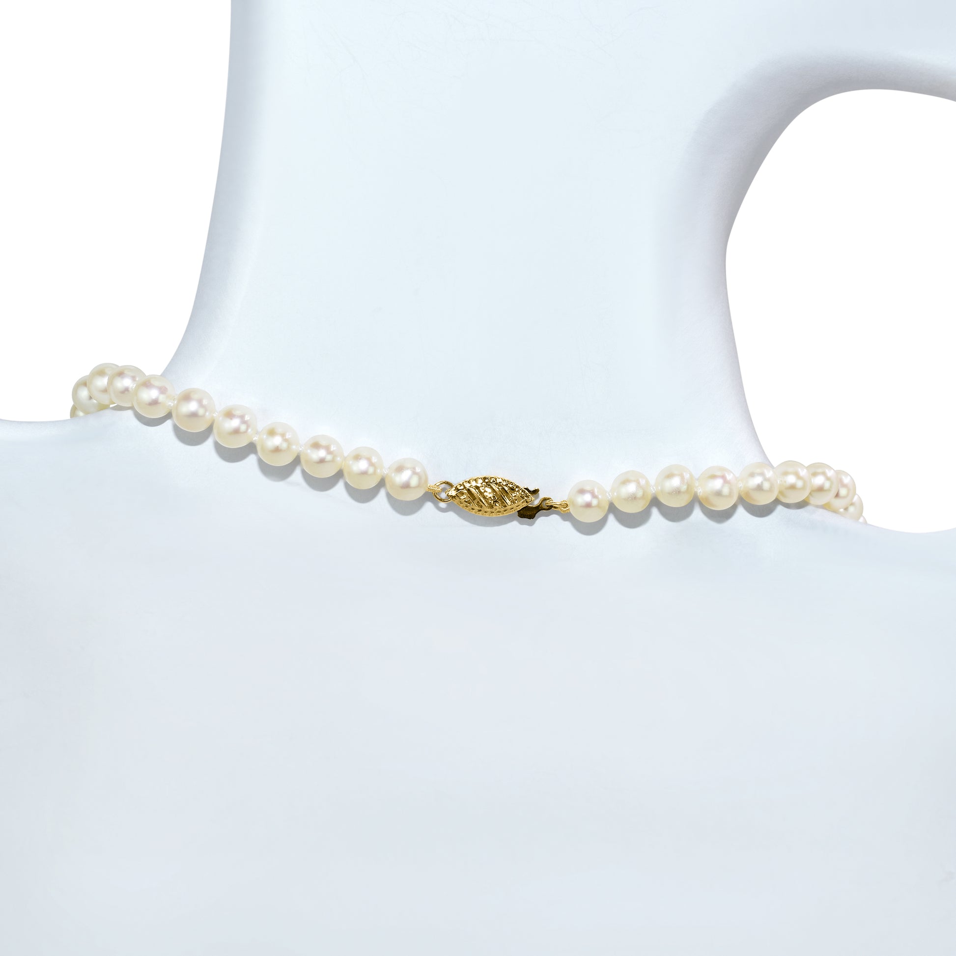 - High-polished 14k yellow gold knotted necklace perfectly set with White Freshwater Pearls. Sensitive-skin friendly and won't tarnish.
