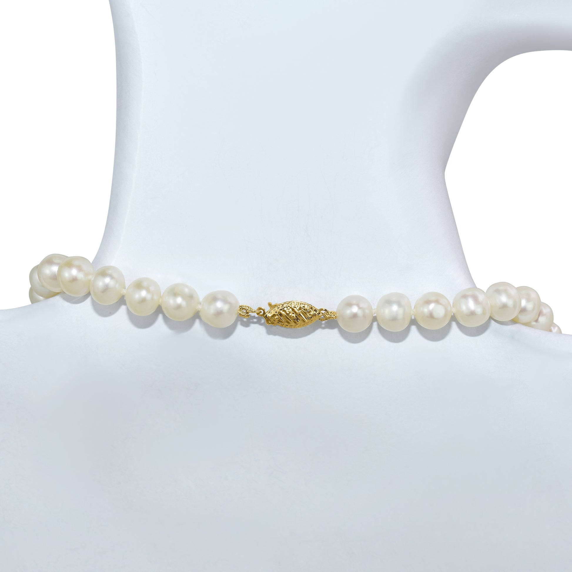 14k Yellow Gold White Freshwater Pearl Strand Necklace 7.5-8mm