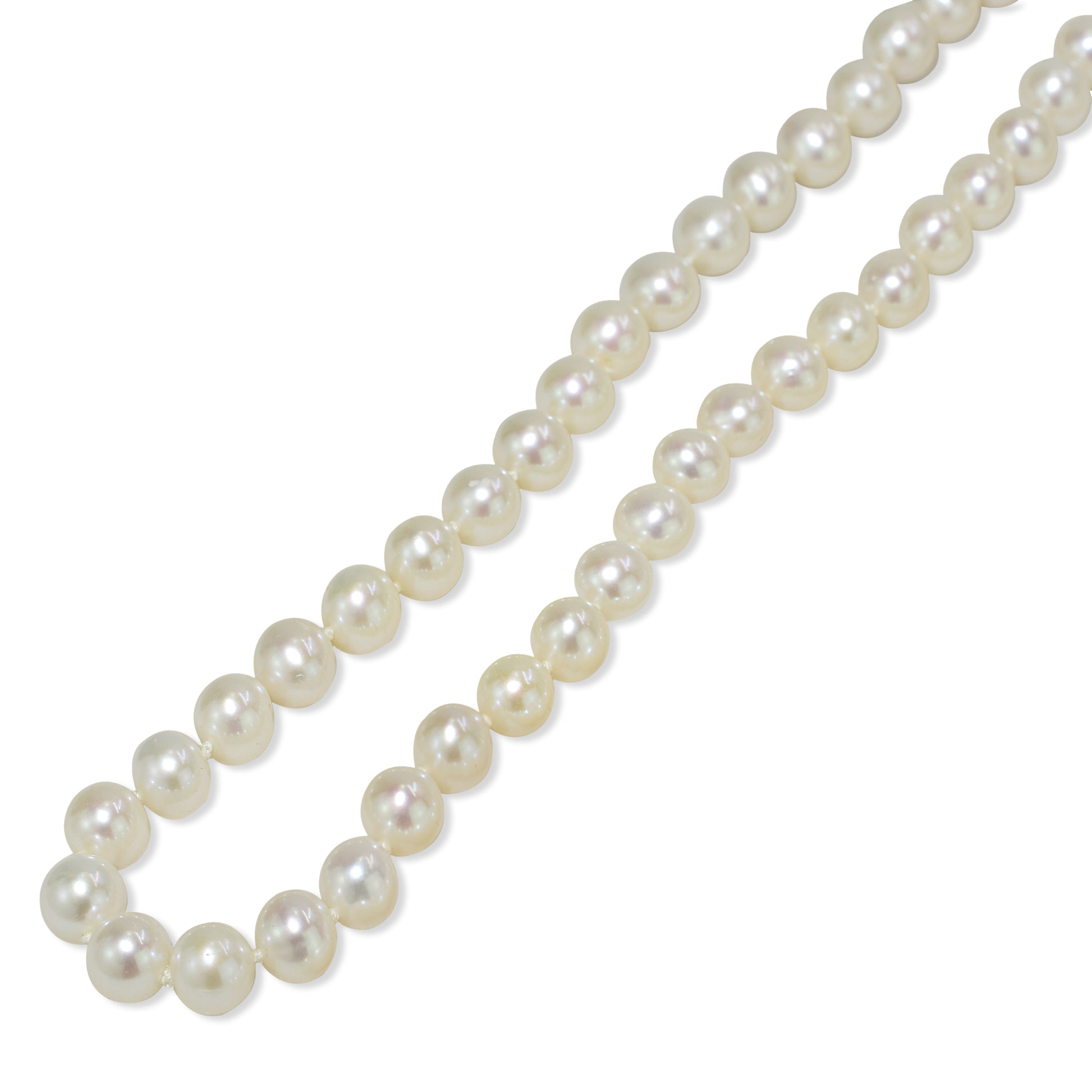 - High-polished 14-karat yellow gold strand necklace perfectly set with White Freshwater Pearls. Sensitive-skin friendly and won't tarnish.